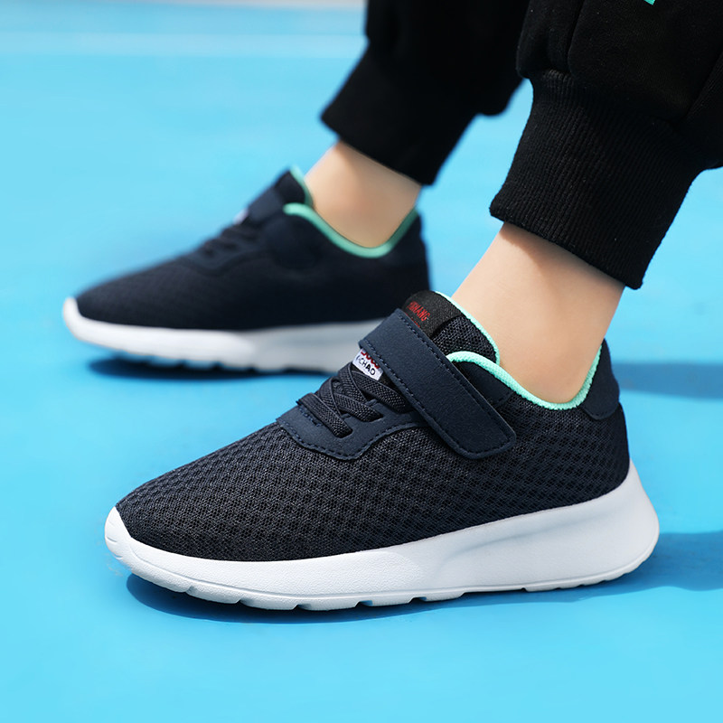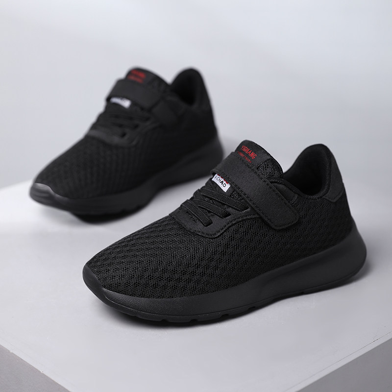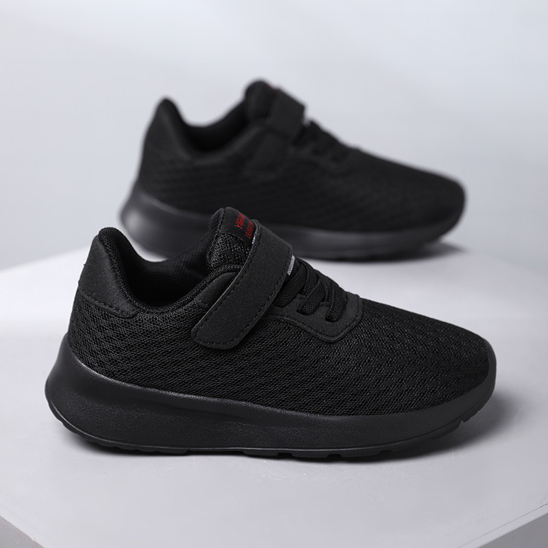 春秋款儿童运动鞋全黑色男童鞋子透气中大童小学生女孩网面休闲鞋