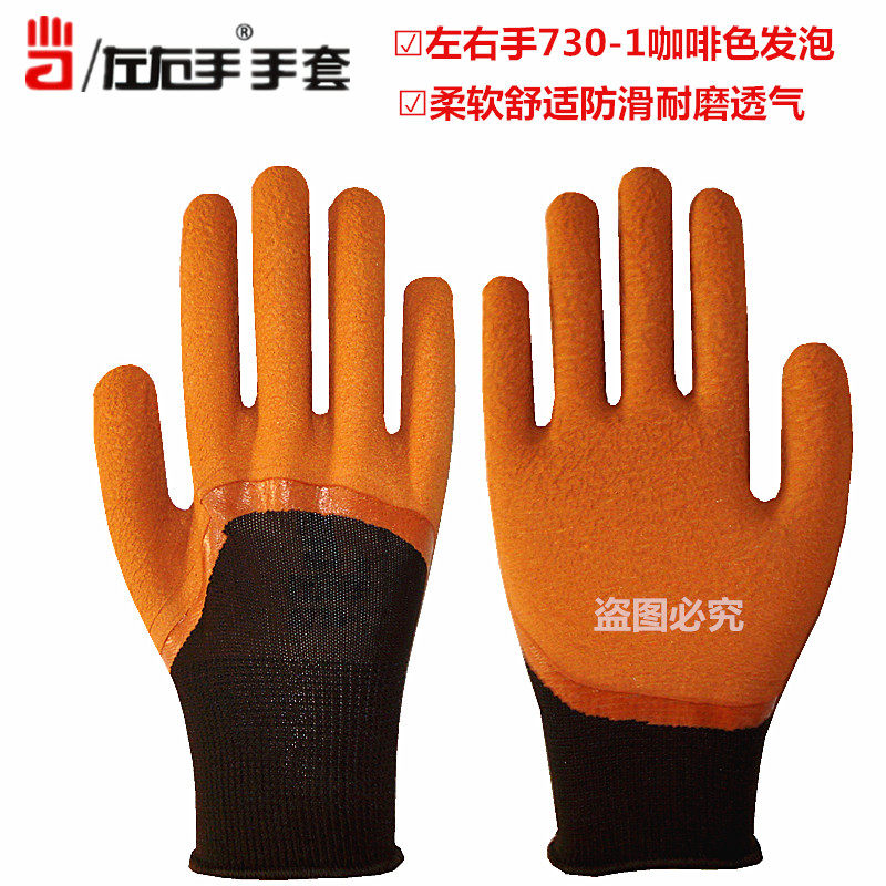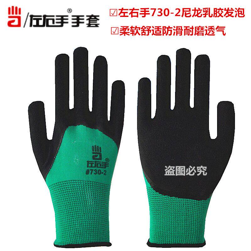 左右手730#乳胶发泡手套劳保耐磨防滑塑胶橡胶透气王工作劳动防护