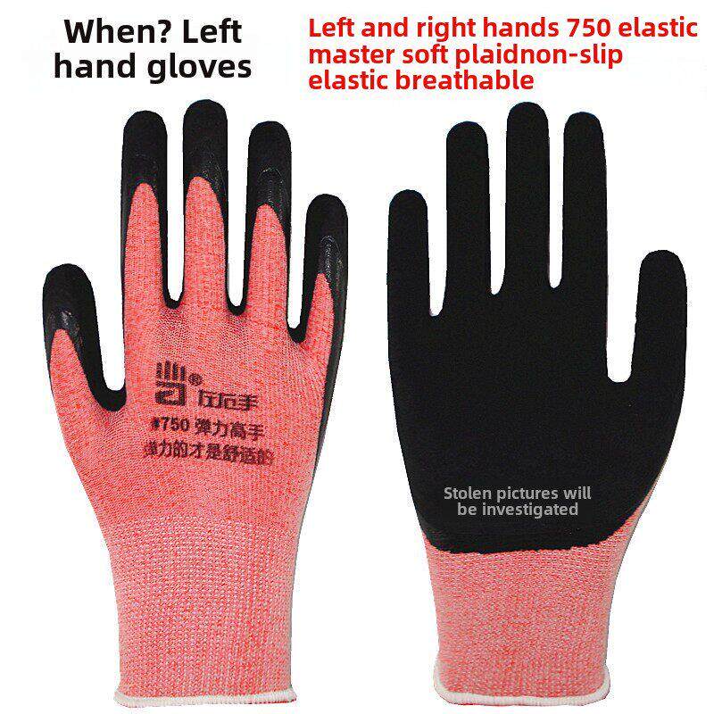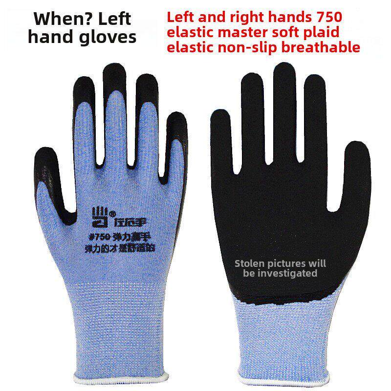 左、右手750乳胶泡沫王劳保手套浸胶耐磨防滑橡胶带胶水保护