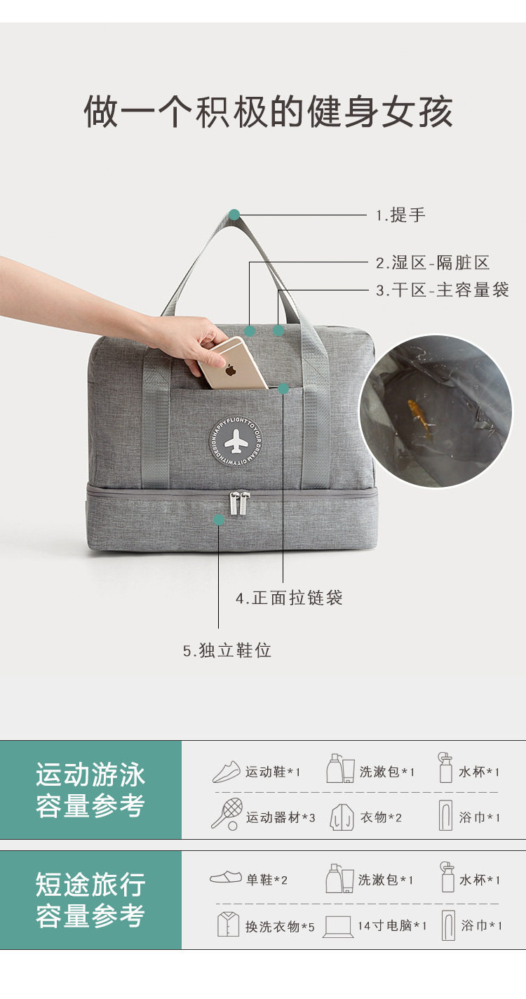 干湿分离!可放鞋子!手提单肩双胆健身收纳包旅游行李包游泳包