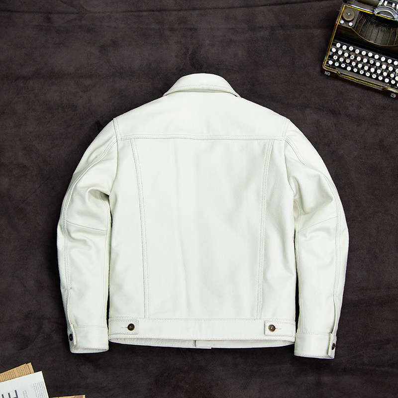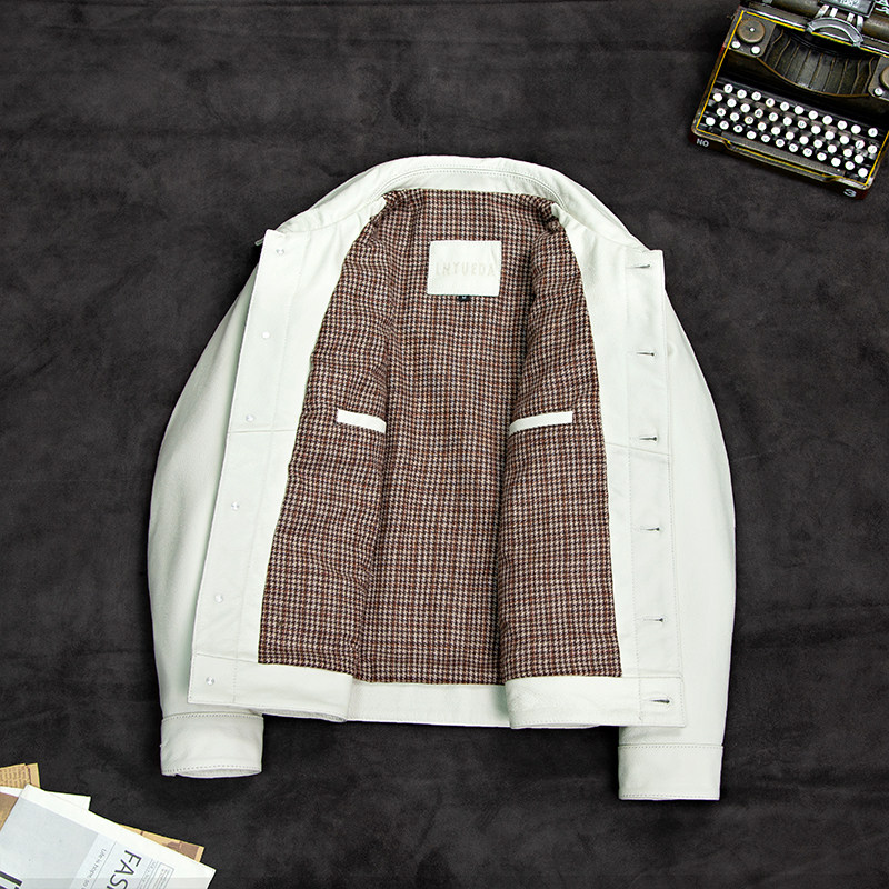 春季新款真皮皮衣简约白色皮夹克头层牛皮机车服修身短款外套男士