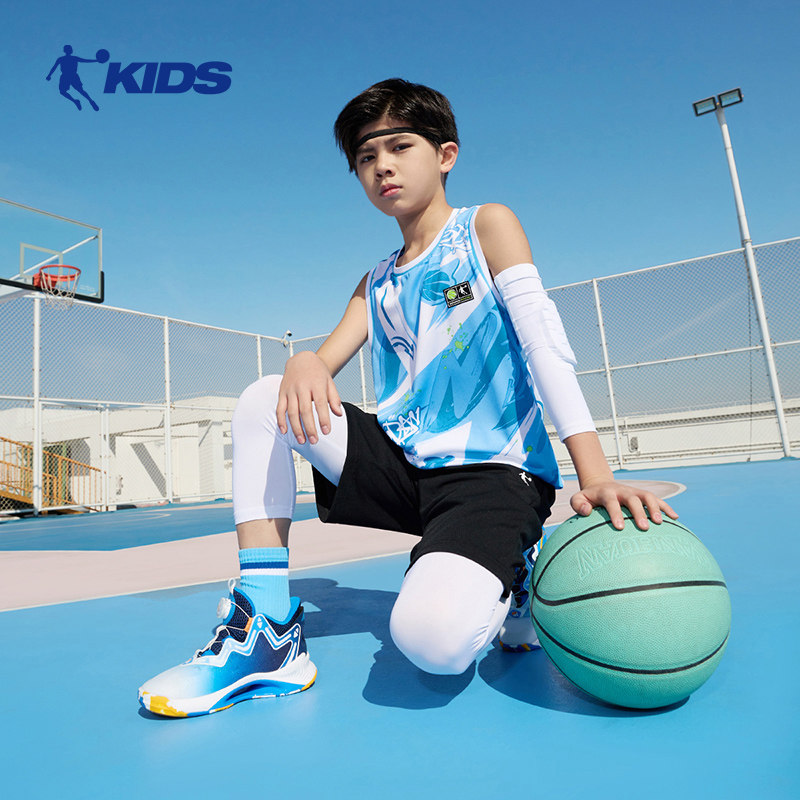 乔丹童装男童篮球服比赛套装夏无袖运动两件套儿童速干短袖短裤薄