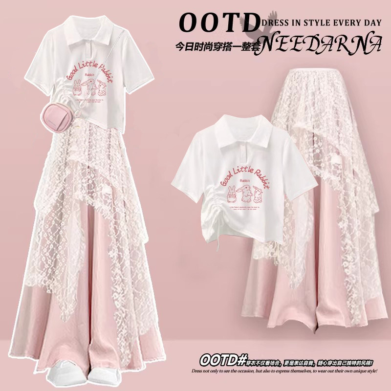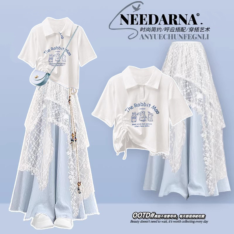 2026超火夏装一整套小个子多巴胺学院风Polo领短袖T恤裙子三件套