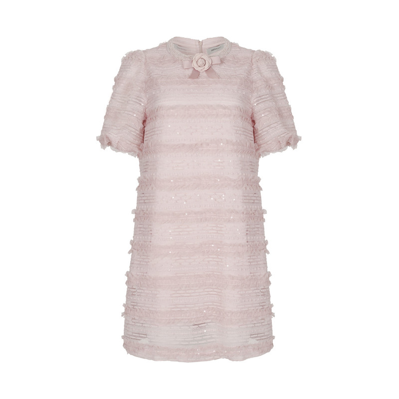 Migaino曼娅奴女装2026春夏新款轻奢高级感网纱裙子小香风连衣裙
