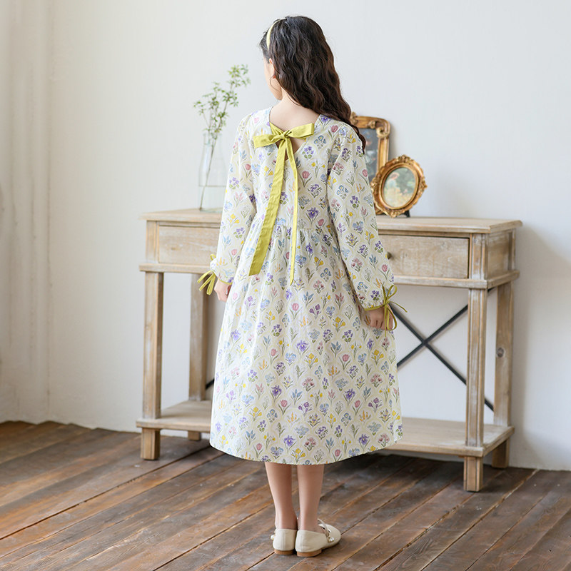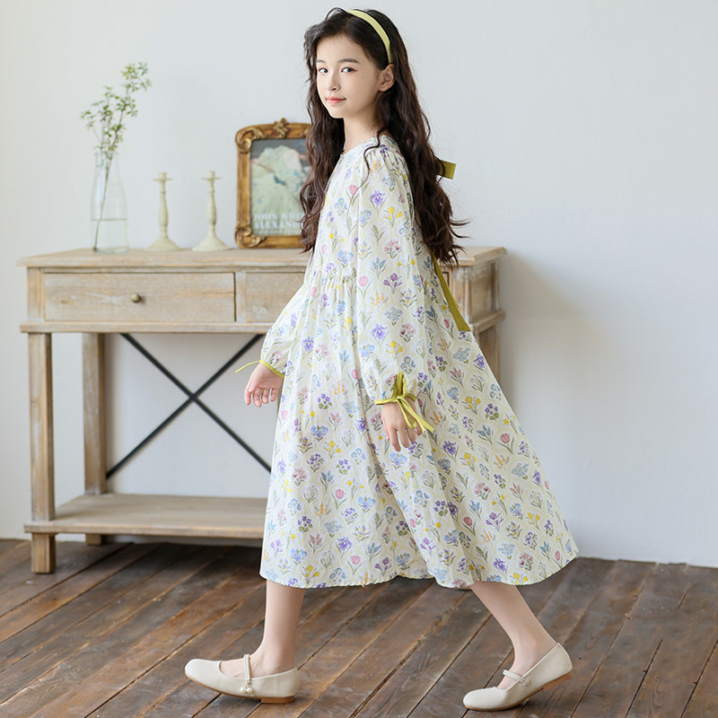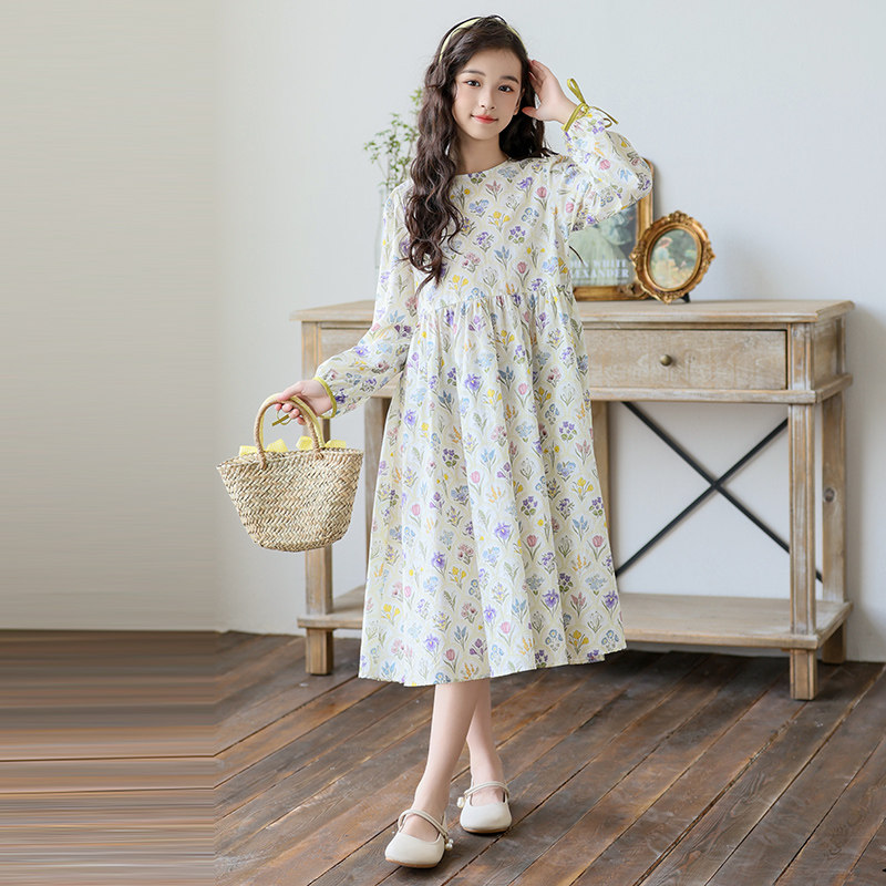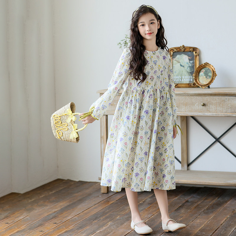 中大女童连衣裙春装长袖碎花裙2026新款女孩公主裙韩版中长款裙子