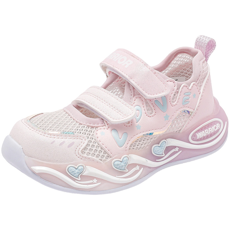 回力女童运动鞋夏季透气网面魔术贴休闲鞋粉色不累脚轻便百搭软底