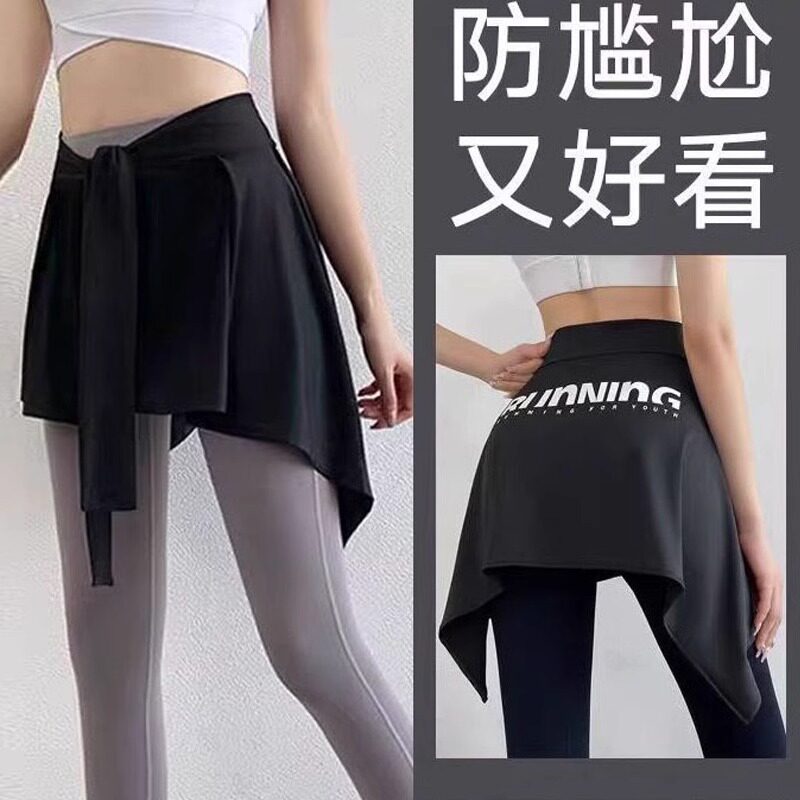 瑜伽裤遮挡裙春秋新款一片式可拆卸短裙运动健身防尴尬一体式屁帘