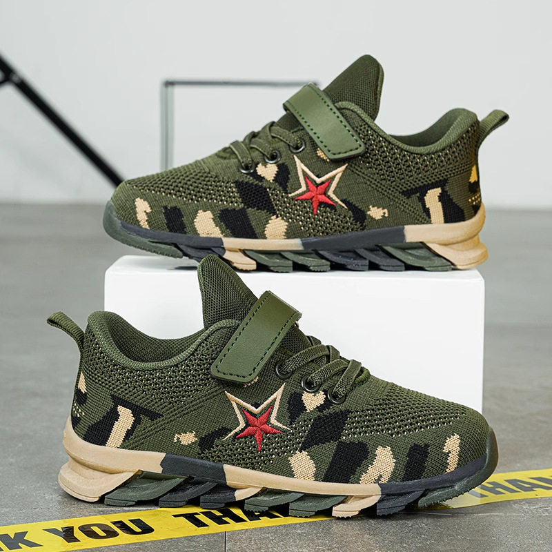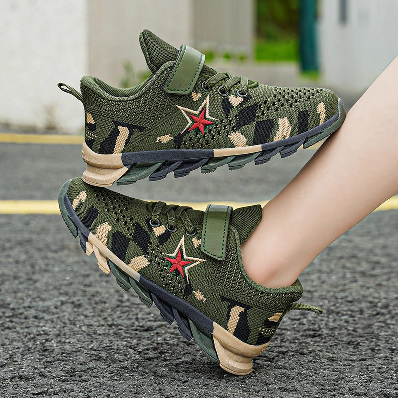 正品军训鞋女2026新款夏季透气初中学生迷彩训练魔术贴运动跑步鞋