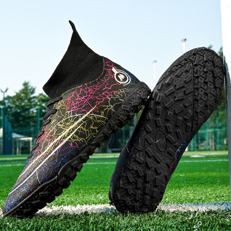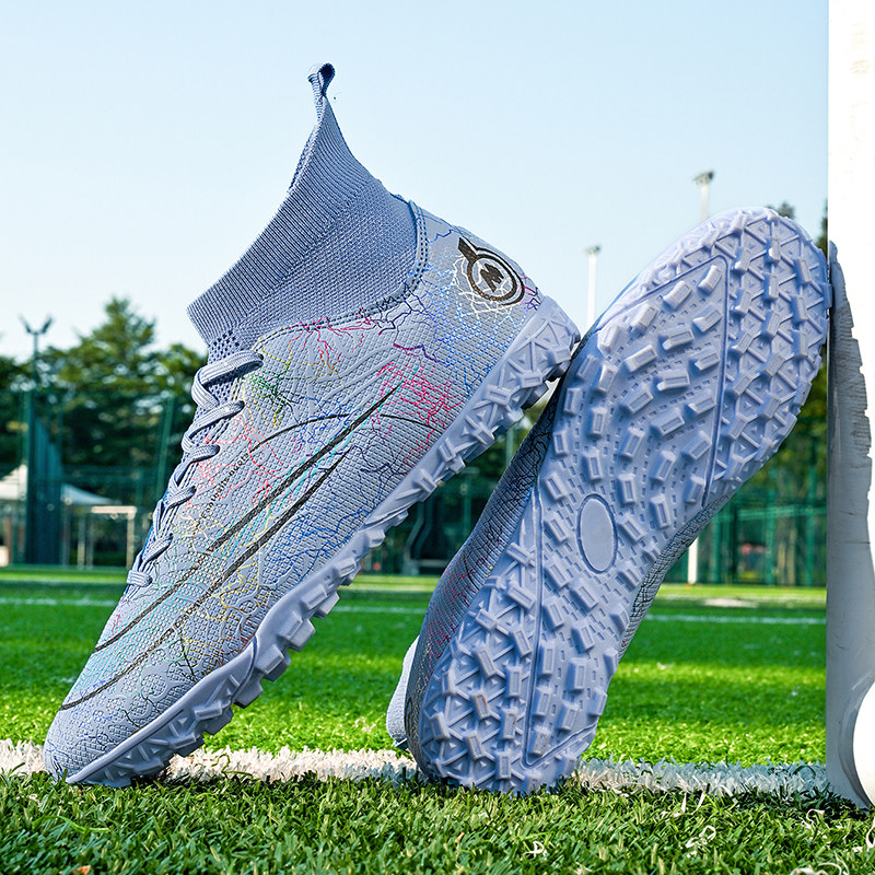 新款高帮足球鞋男女小学生TF碎钉青少年长钉初中生草地防滑训练鞋