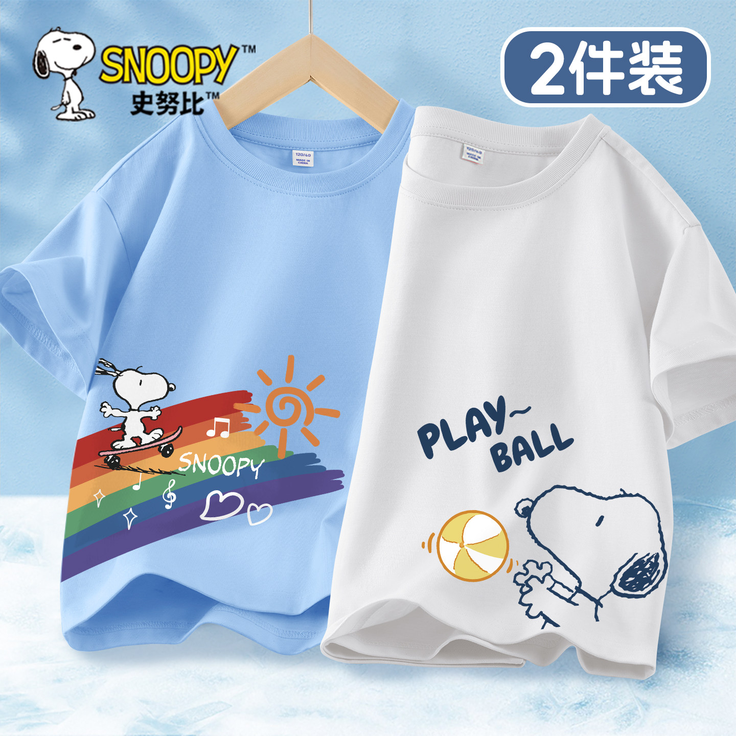 史努比童装儿童纯棉t恤夏季2026新款小男孩夏装上衣透气男童短袖