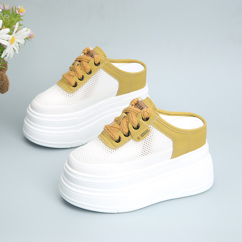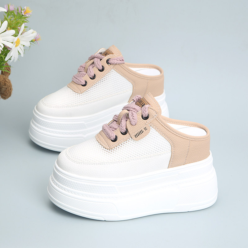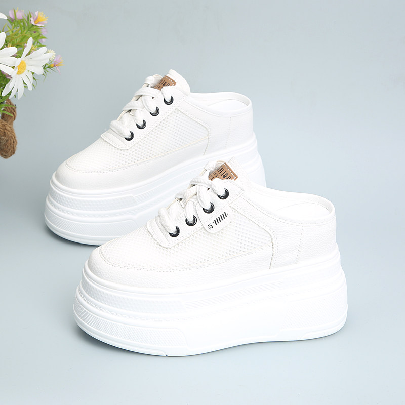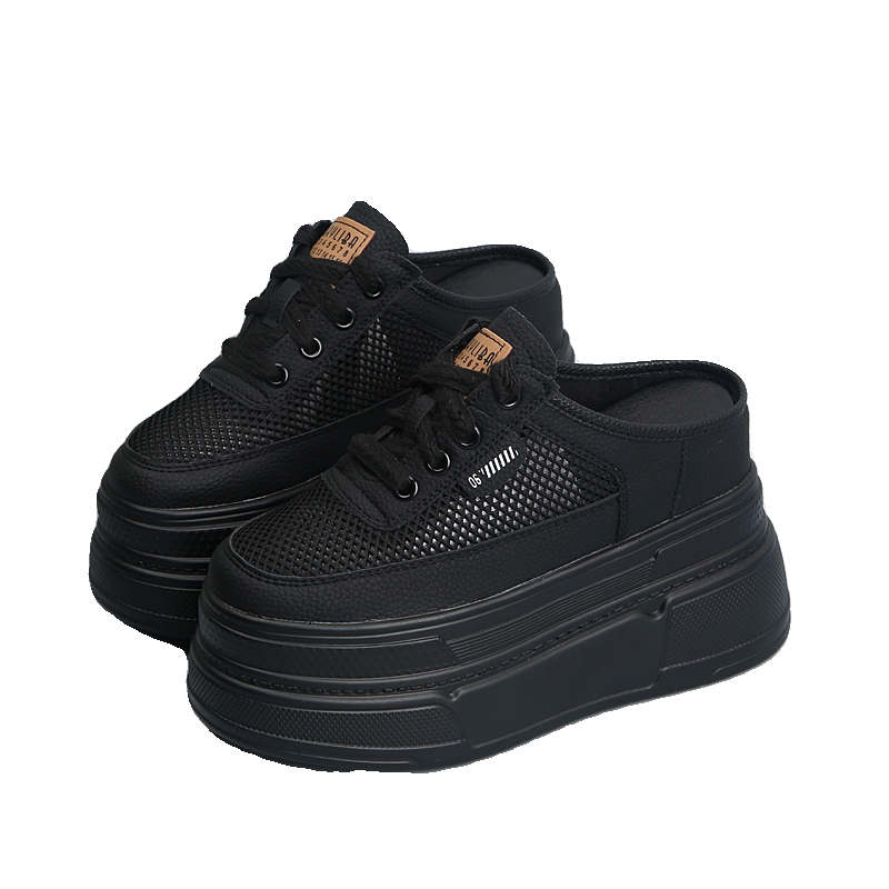 超高跟小个子厚底内增高10cm半拖鞋女外穿2026新款夏季网面包头拖
