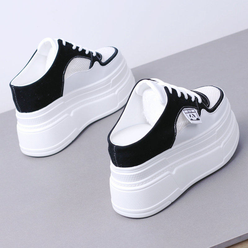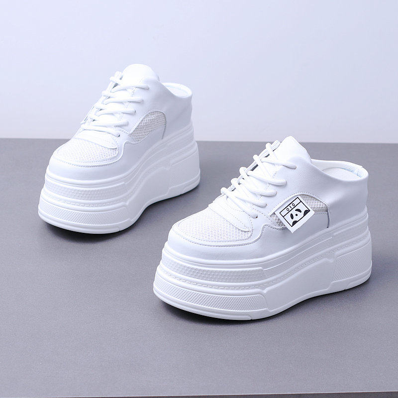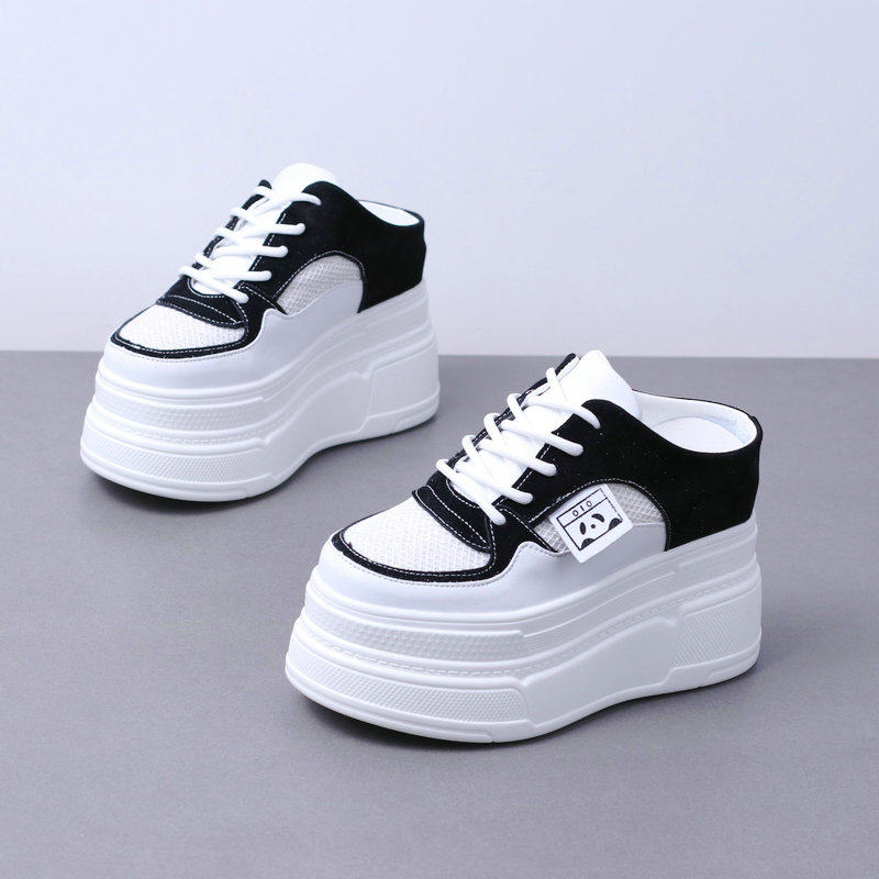 包头半拖鞋女2026夏季内增高10cm外穿百搭爆款透气网面凉拖厚底鞋