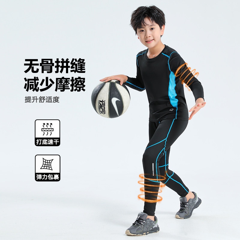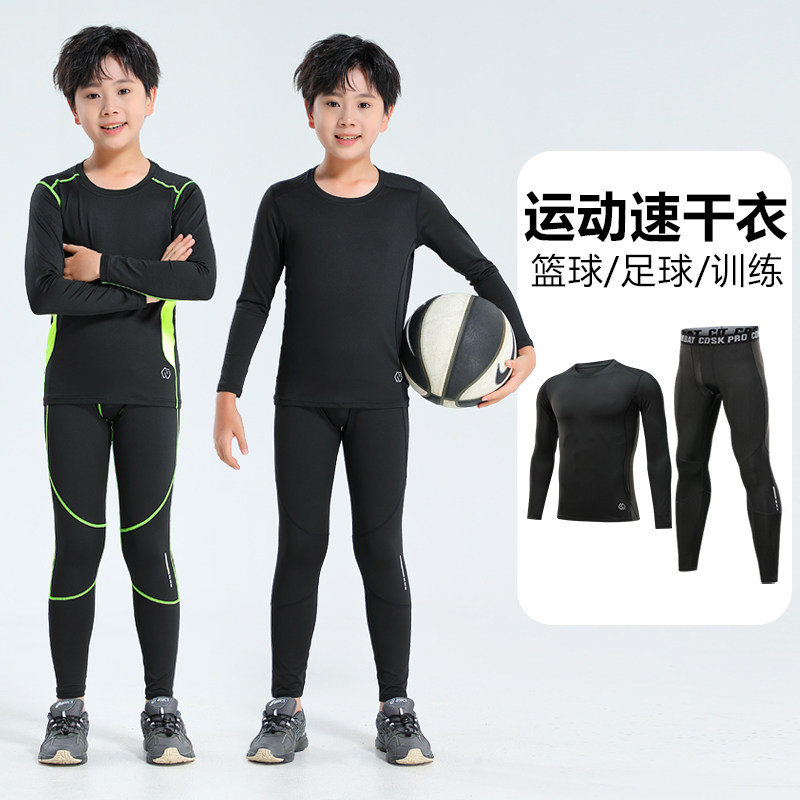儿童篮球服紧身衣训练服男童跑步体能青少年速干打底运动套装秋冬
