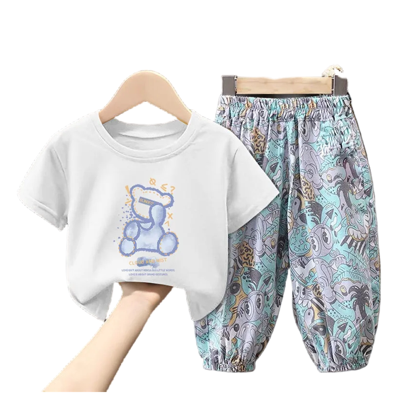 儿童套装新款男童女童纯棉T恤2026夏装洋气宝宝短袖长裤两件套装