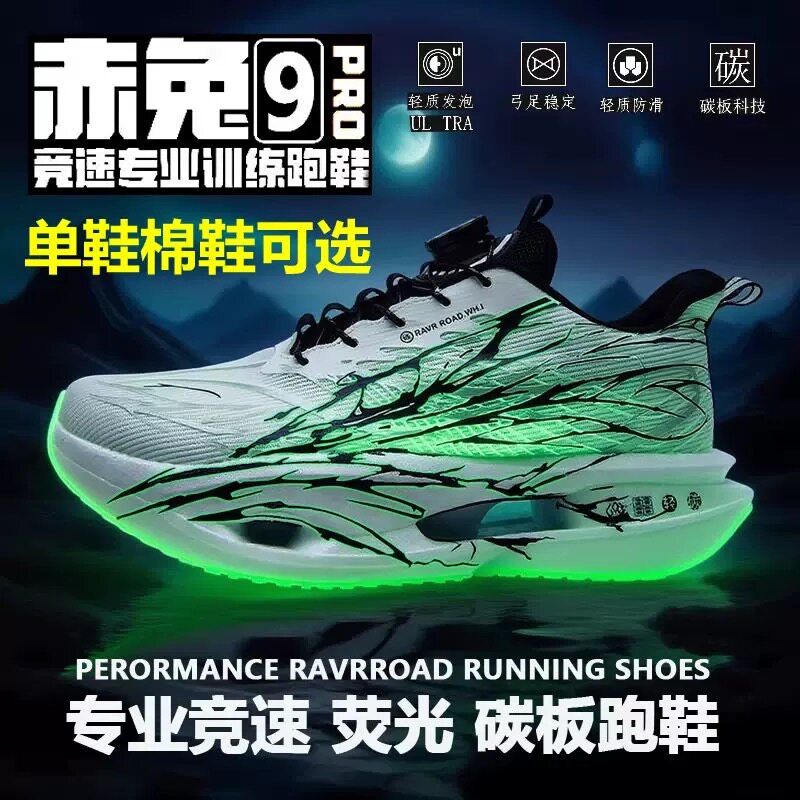 赤兔9pro夜光跑步鞋春夏透气旋转纽扣防滑儿童运动鞋竞速碳板跑鞋