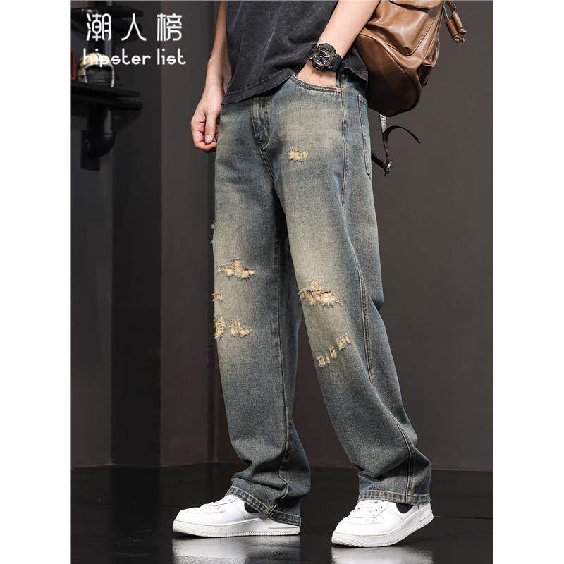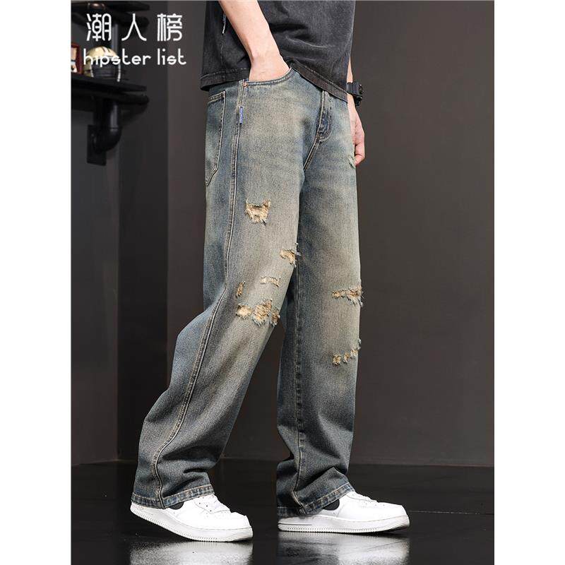 美式破洞牛仔裤男款2026春秋新款直筒宽松阔腿休闲裤子水洗长裤男