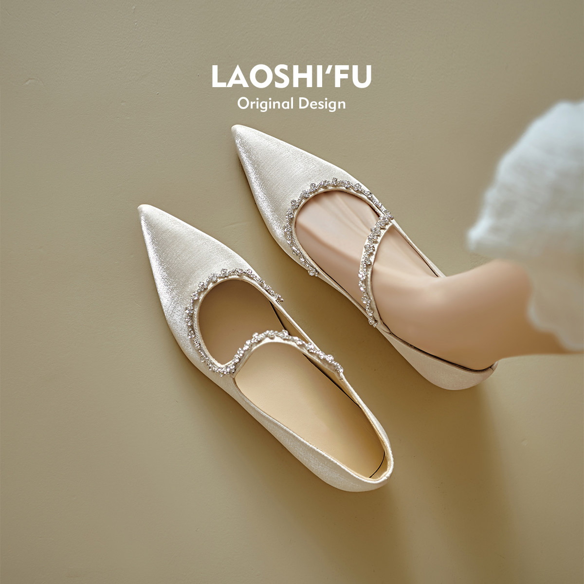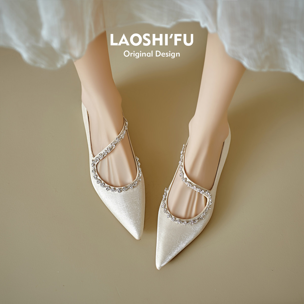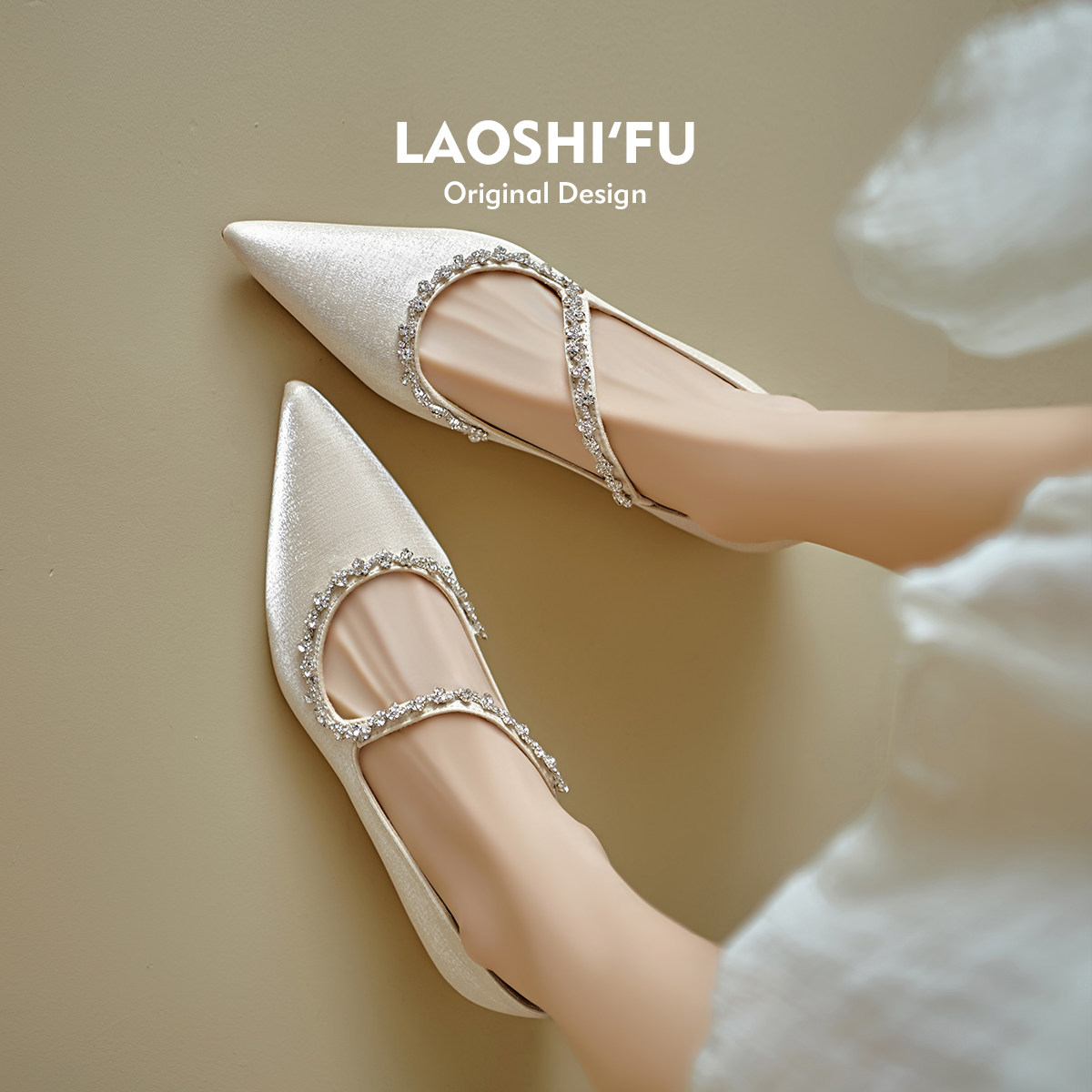羊皮版!法式温柔仙女风水钻尖头内增高单鞋女平底玛丽珍鞋晚晚鞋