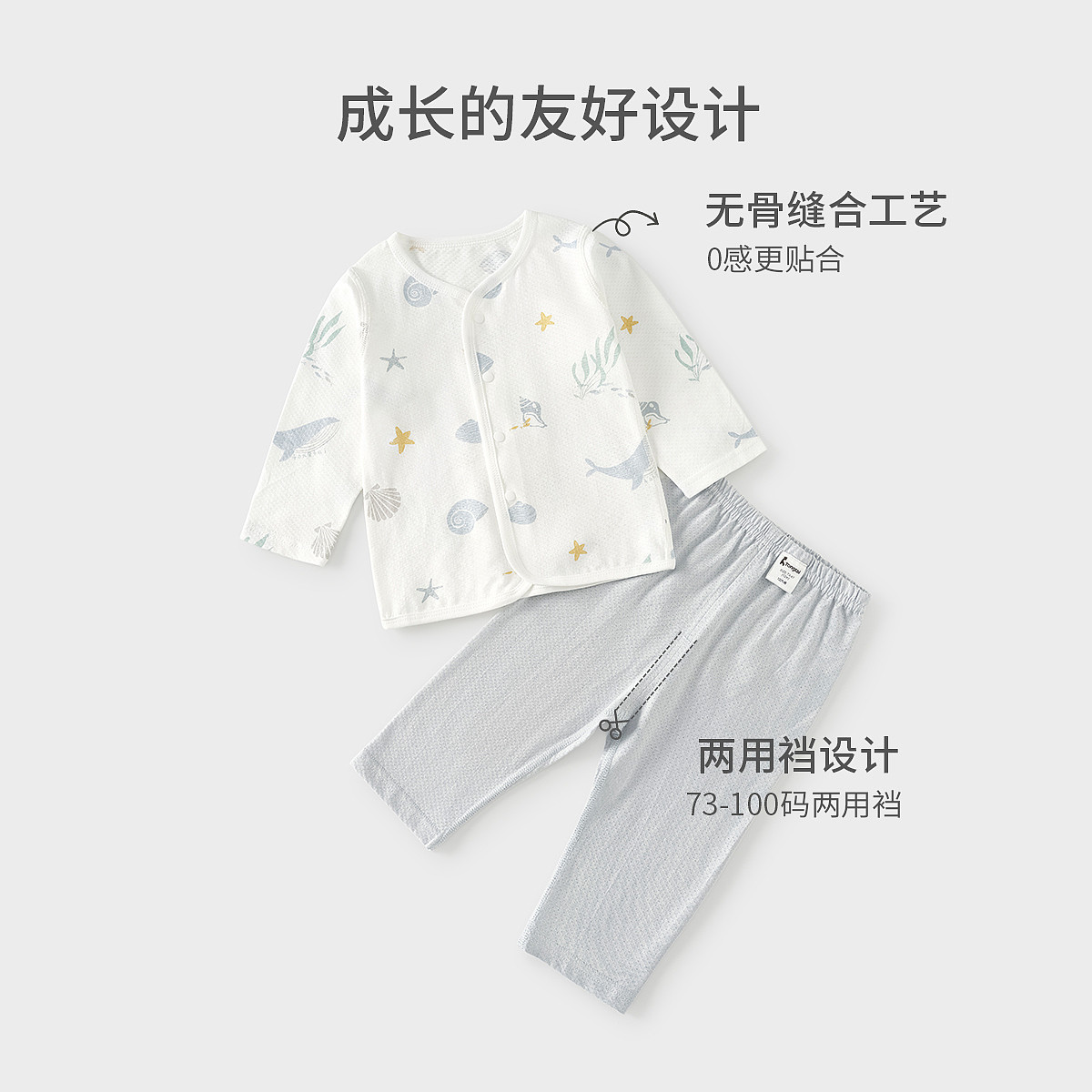 童泰宝宝睡衣夏季纯棉儿童套装女童家居服男童长袖上衣裤子空调服