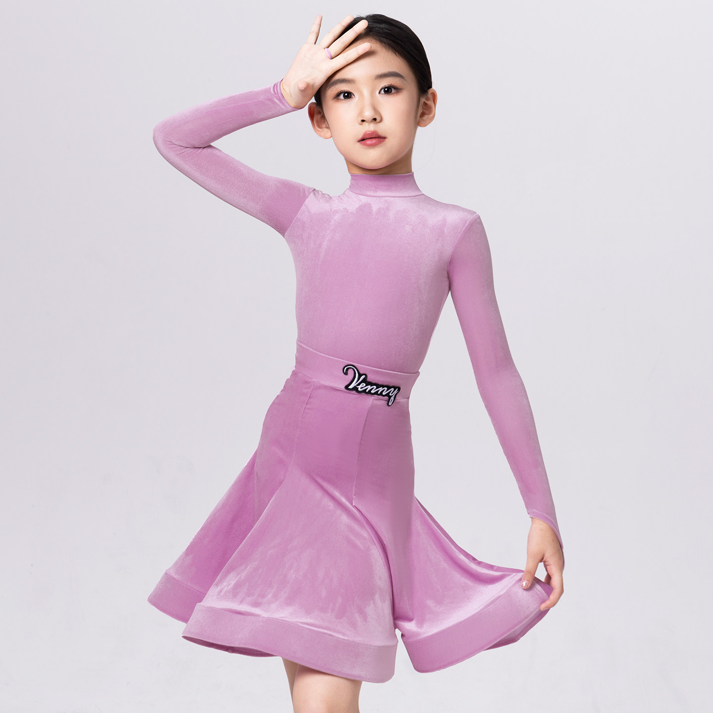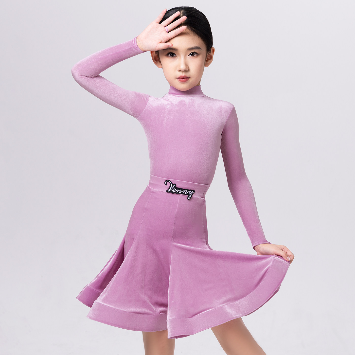 Venny薇妮拉丁舞服女儿童比赛规定服国标考级黑池演出服超薄丝绒