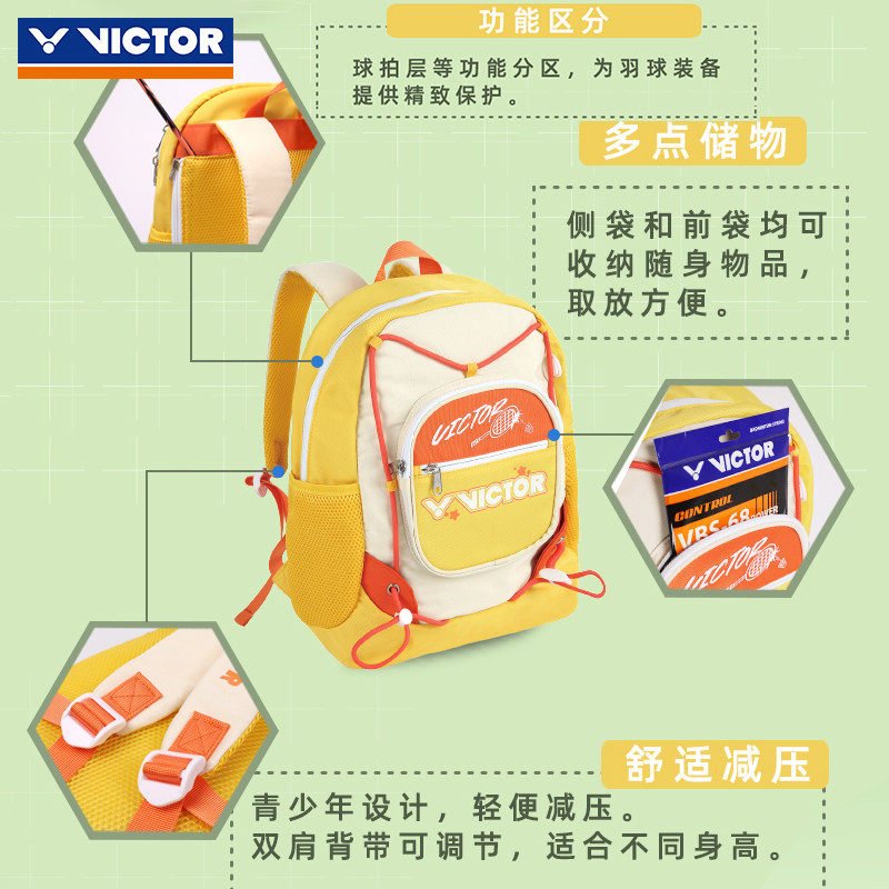 VICTOR威克多羽毛球包儿童大容量舒适训练青少双肩背包BR012JR