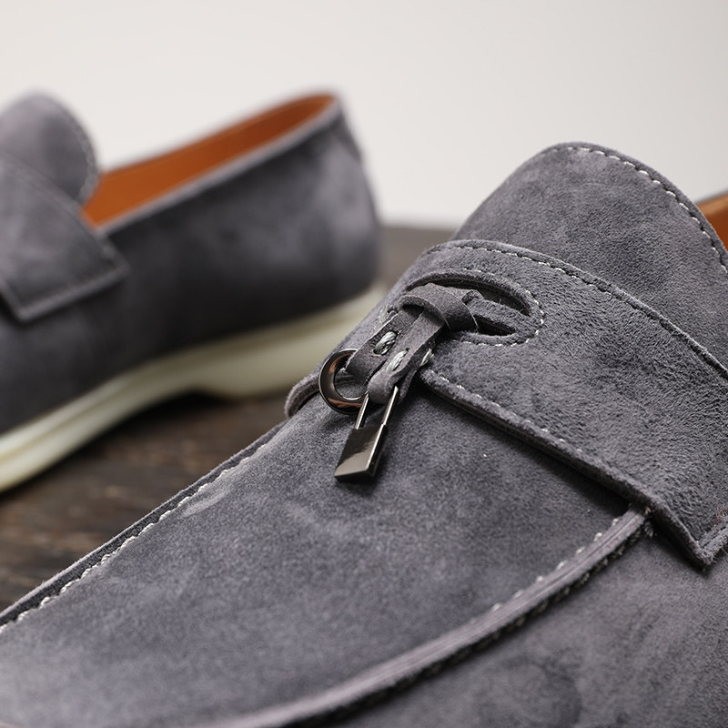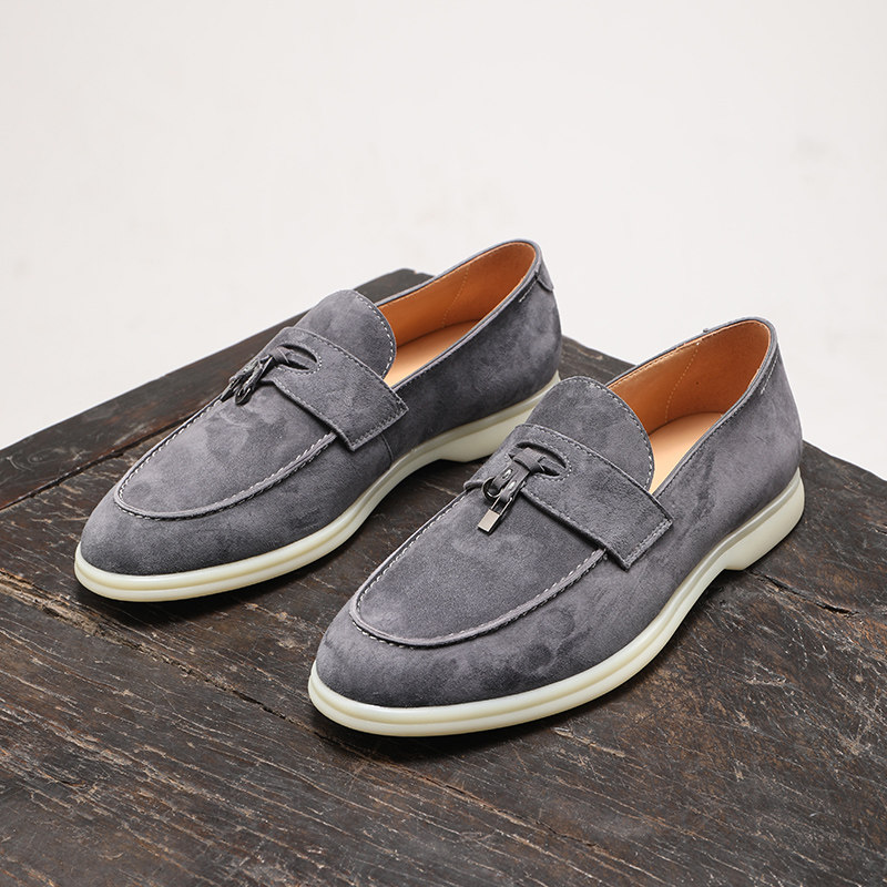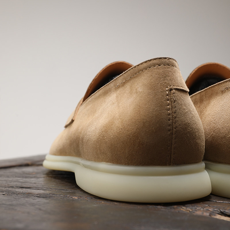 夏季羊猄反绒乐福鞋真皮男士皮鞋summerwalk休闲透气一脚蹬豆豆鞋