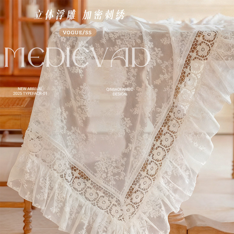 法式床头柜盖巾刺绣蕾丝多用防尘装饰盖罩冰箱帘微波炉电视盖布