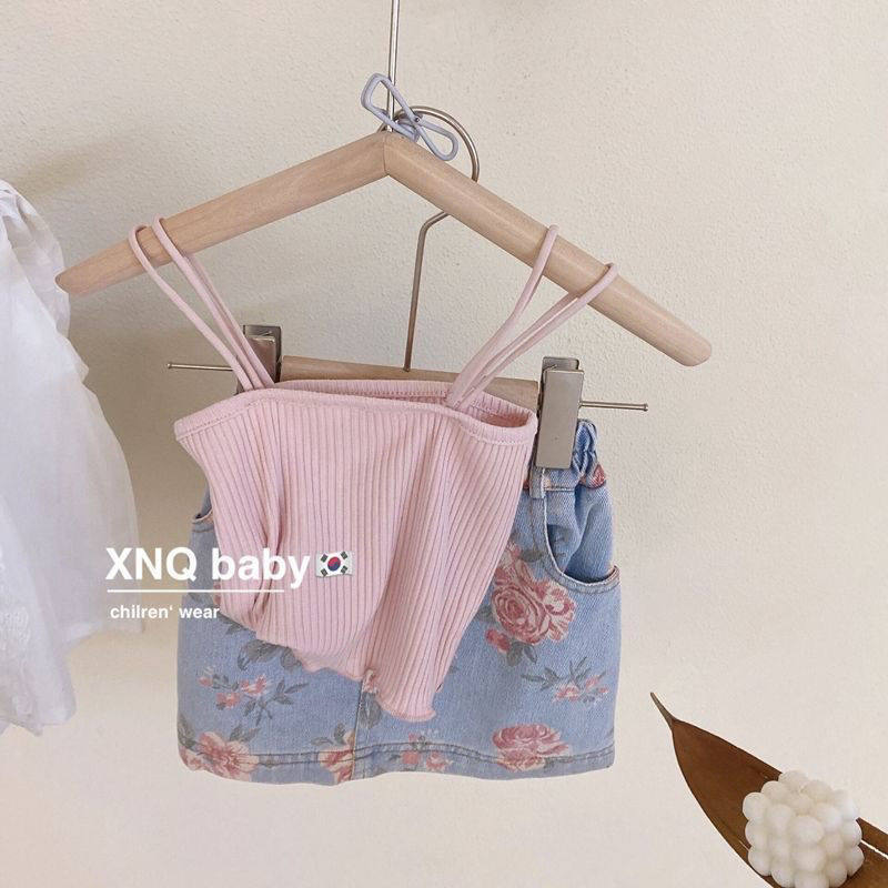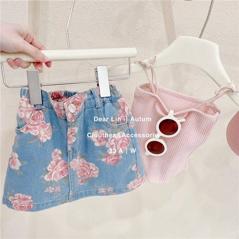 韩国女童2025夏装新款网红洋气宝宝薄款吊带上衣牛仔短裙两件套装