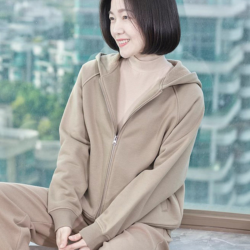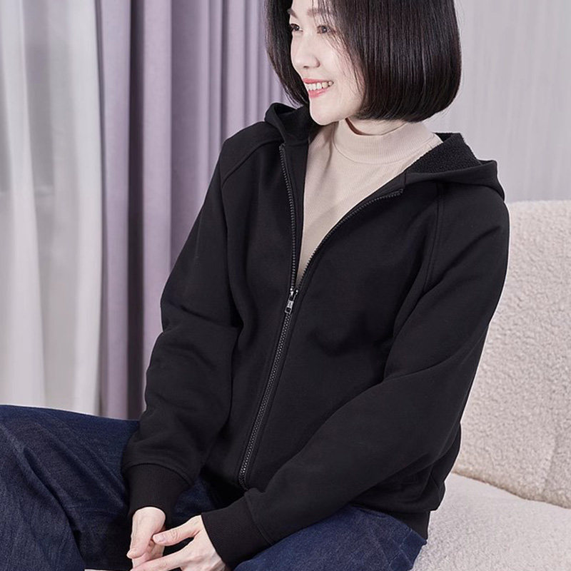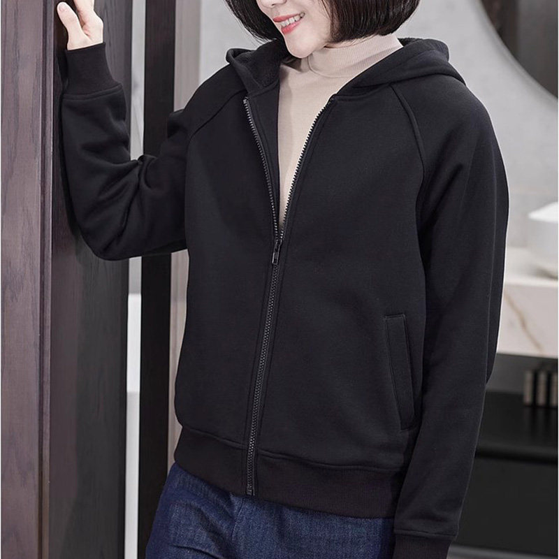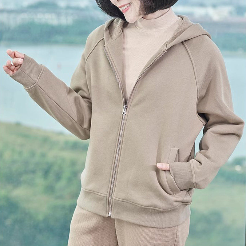 高级感外套女款秋冬季大码宽松减龄洋气加绒保暖夹棉连帽长袖卫衣