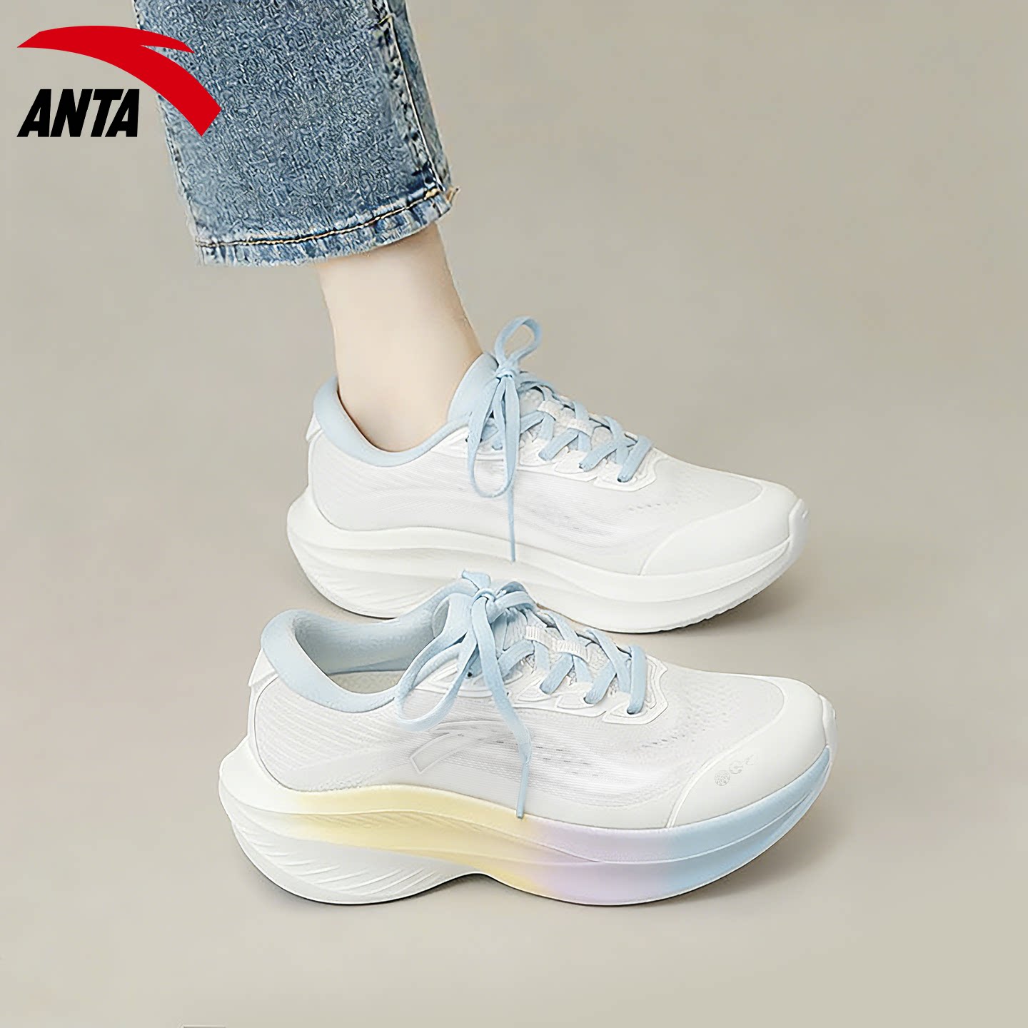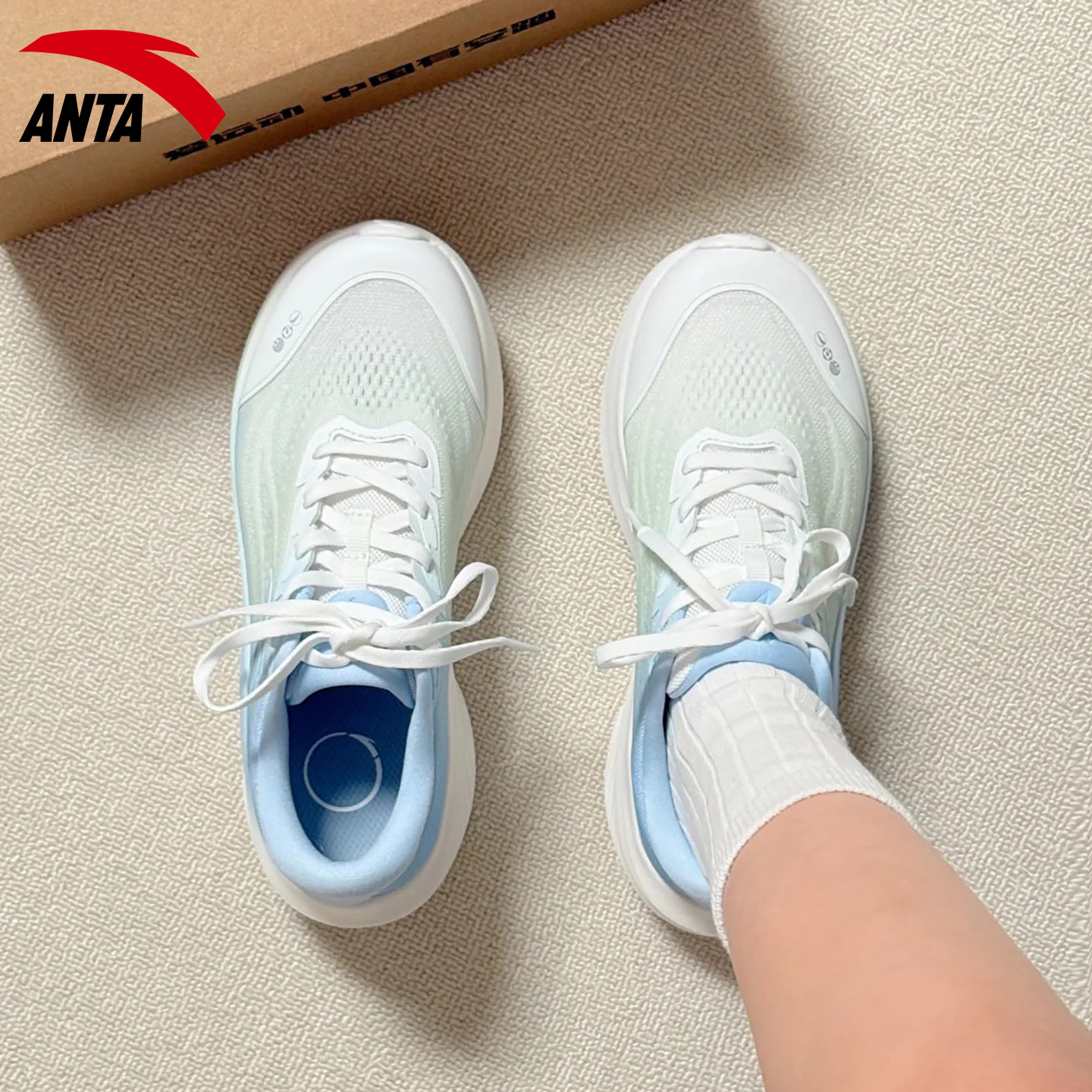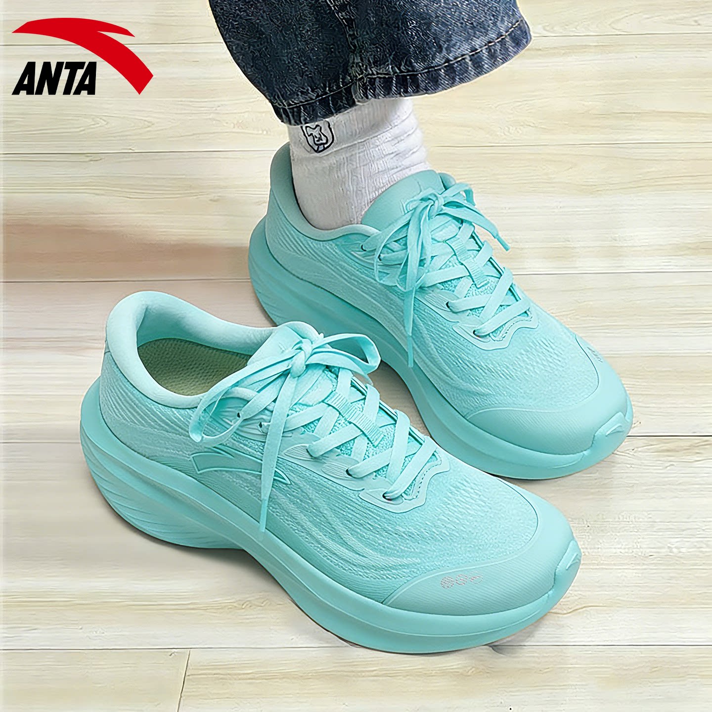 安踏绿色跑步鞋女鞋初中生体育中考运动鞋子轻便透气回弹叶子跑鞋
