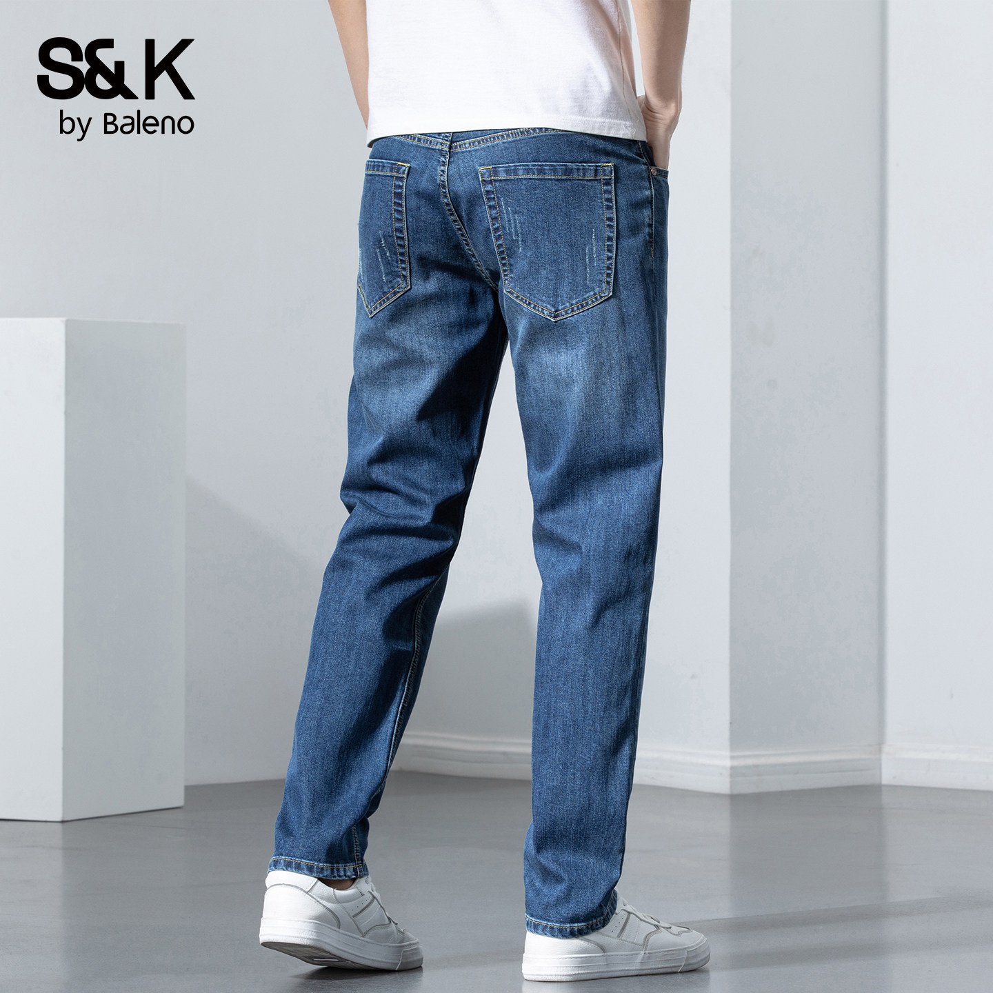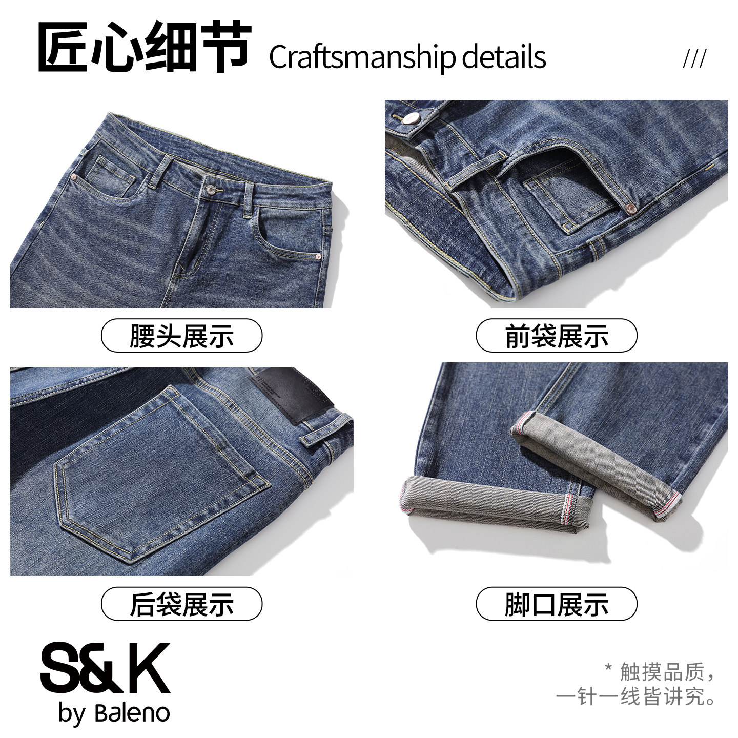 班尼路SK夏季复古牛仔裤男款修身直筒2026新款男装弹力长裤子男YS