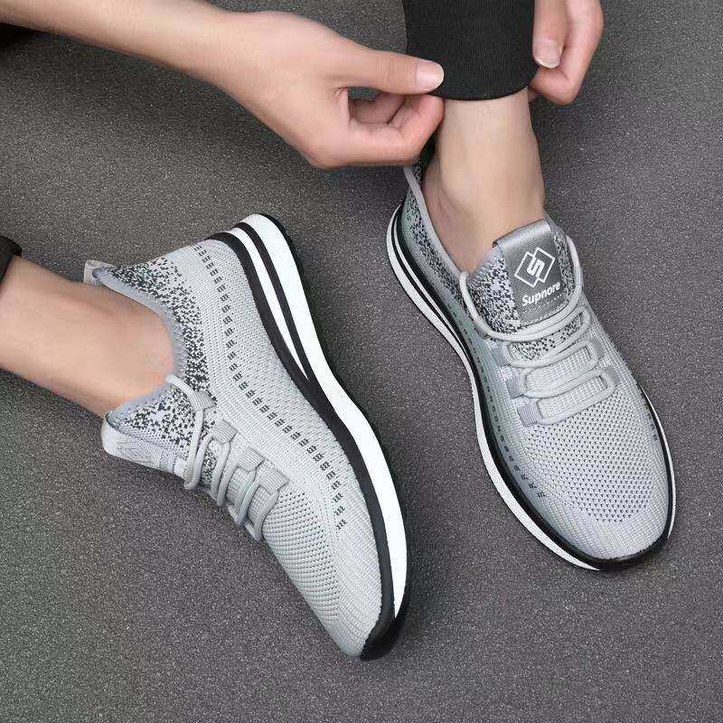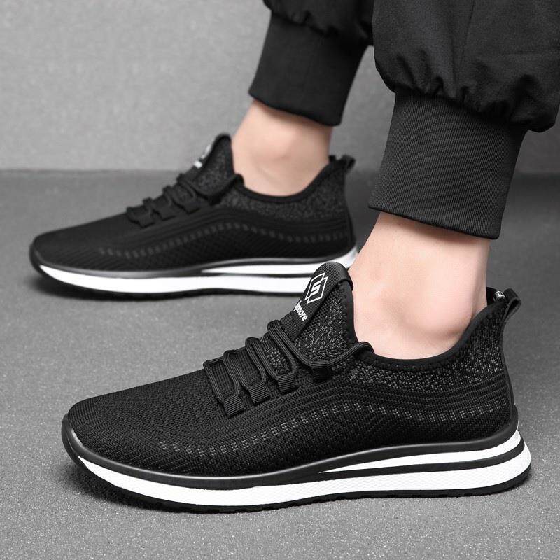 男鞋夏季透气2025新款飞织网面休闲鞋轻便防滑厚底减震跑步运动鞋