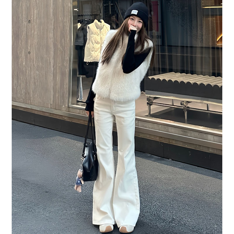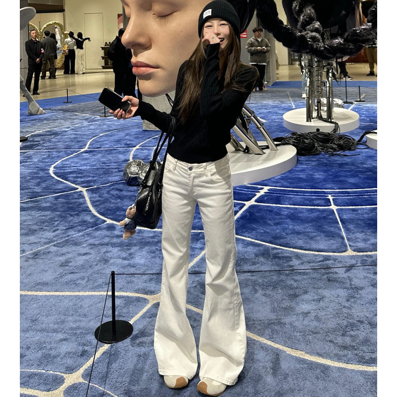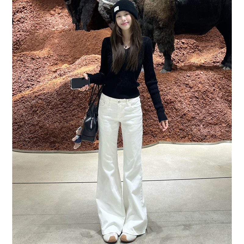 白色不贴腿微喇叭牛仔裤女2026春季新款低腰垂感显瘦小个子直筒裤