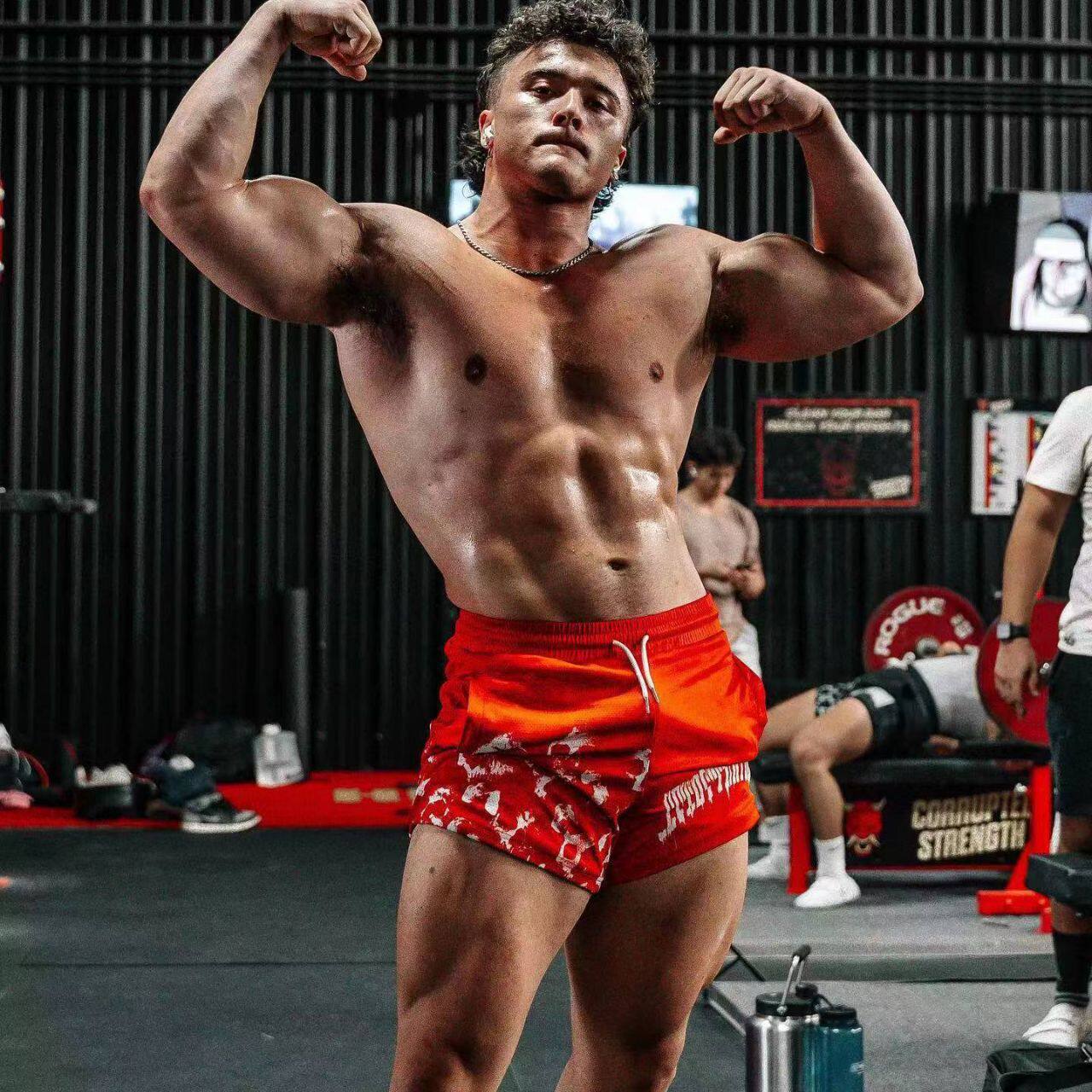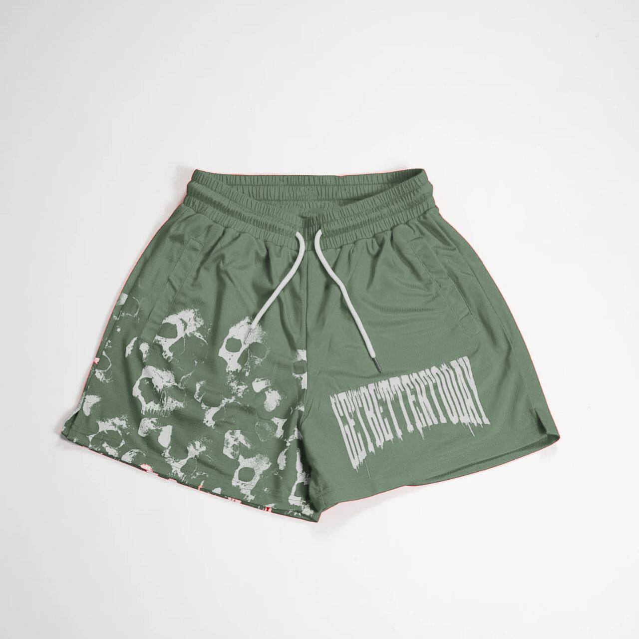 男运动网眼速干潮牌拳击练腿训练三分裤肌肉健身长跑印花篮球短裤