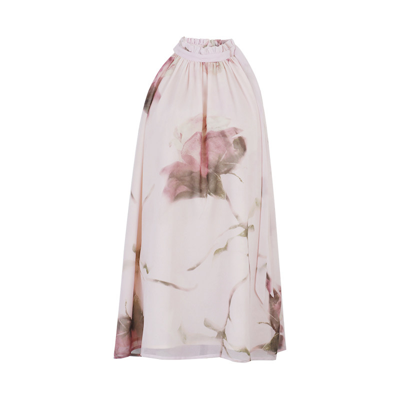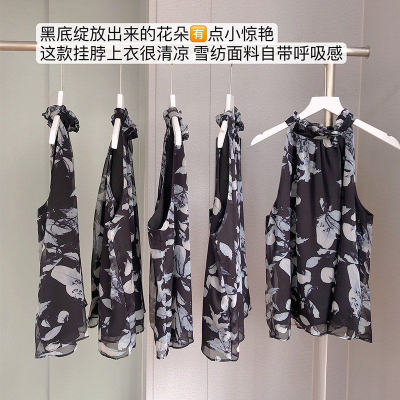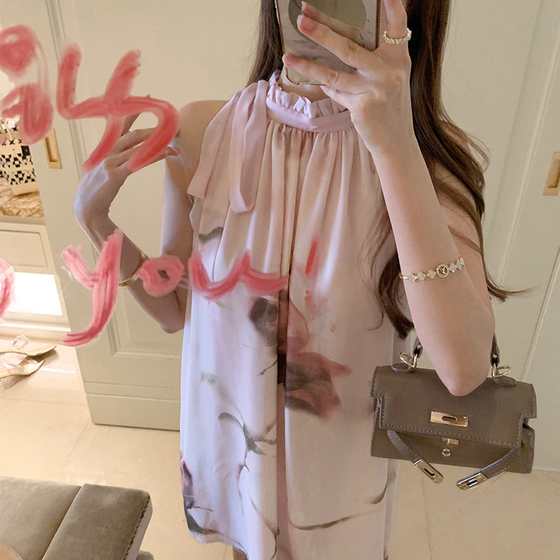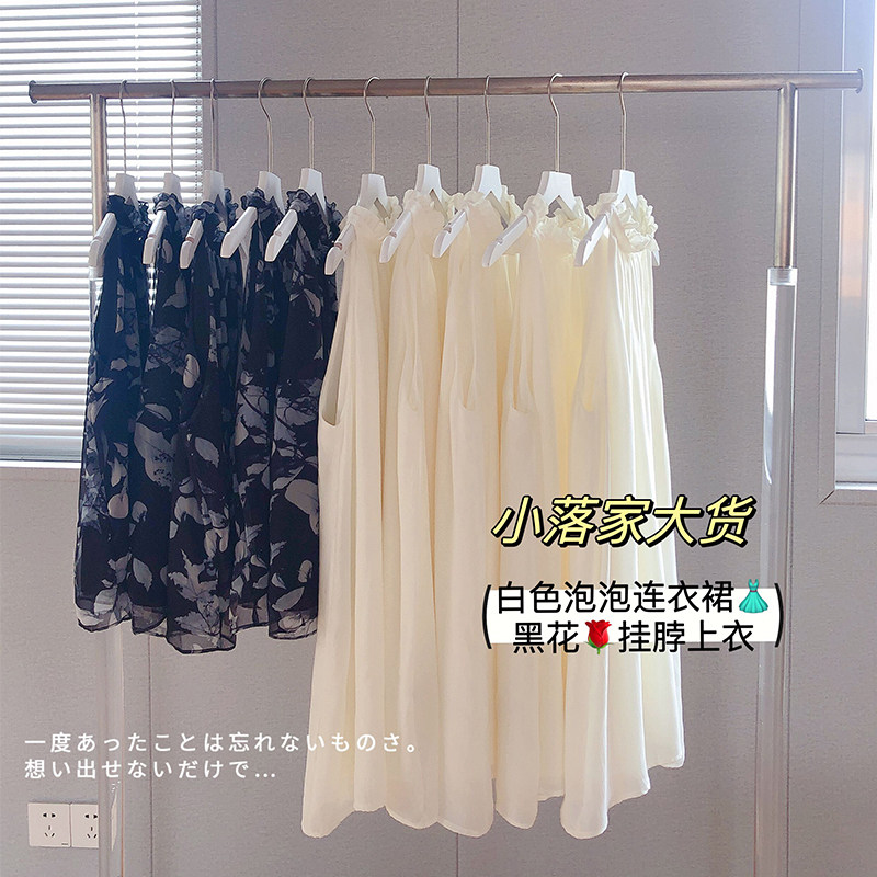 大姐姐 海边度假雪纺短款小个子白色挂脖连衣裙2023新款女夏裙子
