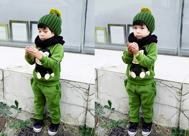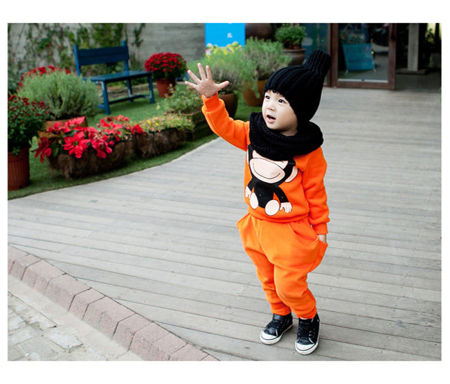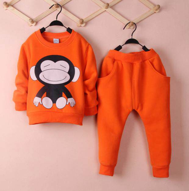 秋冬款童装大嘴猴男女童加绒加厚卫衣运动两件套装韩版纯棉