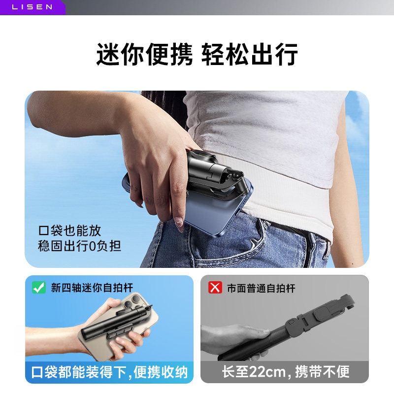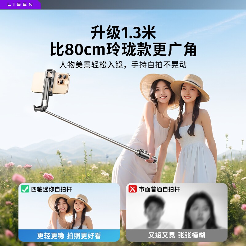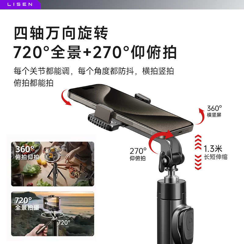 311线报网描述:迷你便携 升级1.3米 720°俯仰拍 美颜补光