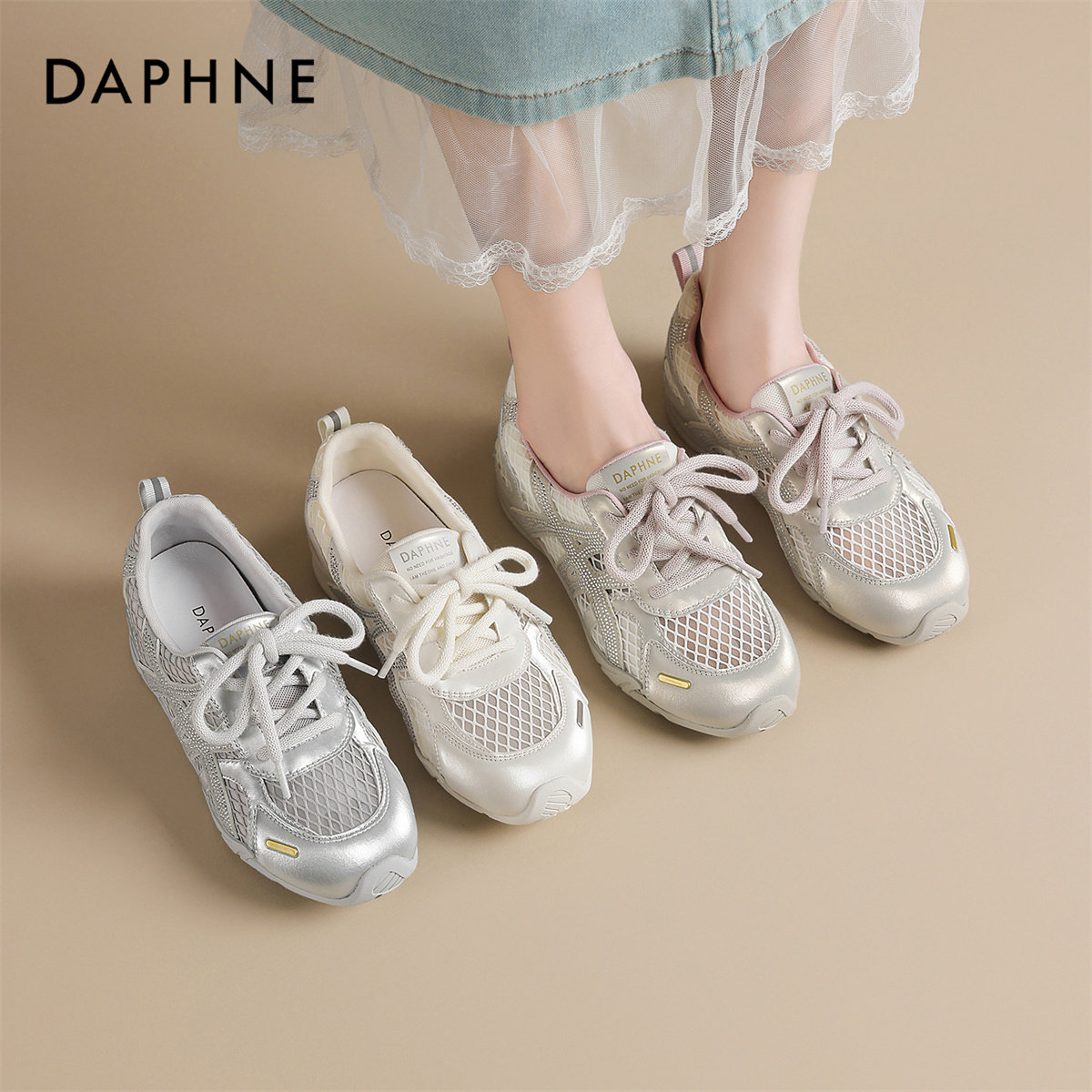 达芙妮德训鞋女鞋2026新款夏季薄款透气网面不闷脚轻便休闲运动鞋