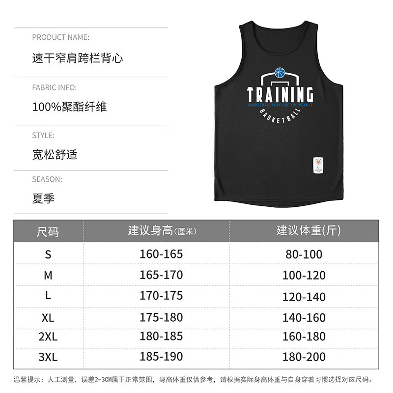 美式无袖跨栏打篮球服速干背心热身跑步健身薄坎肩排汗透气训练服