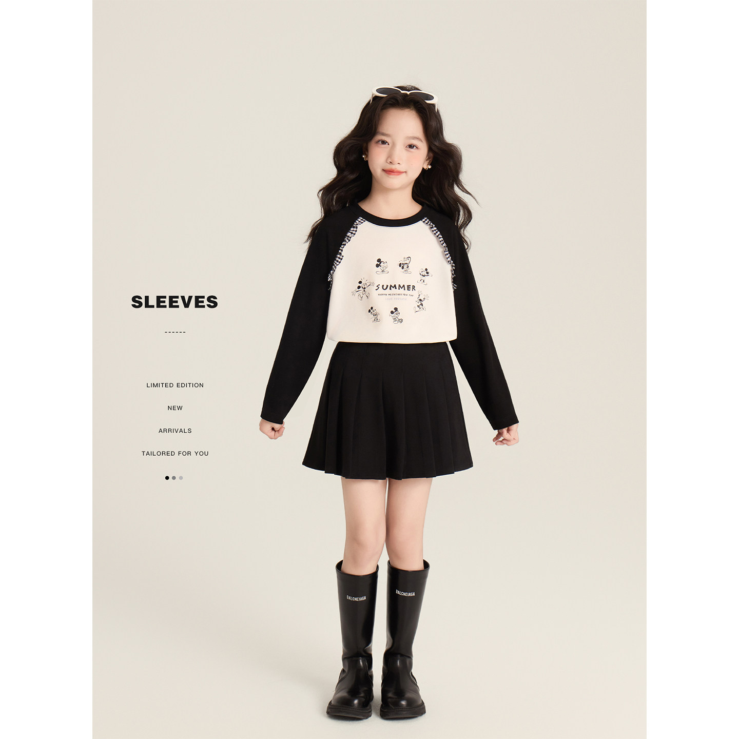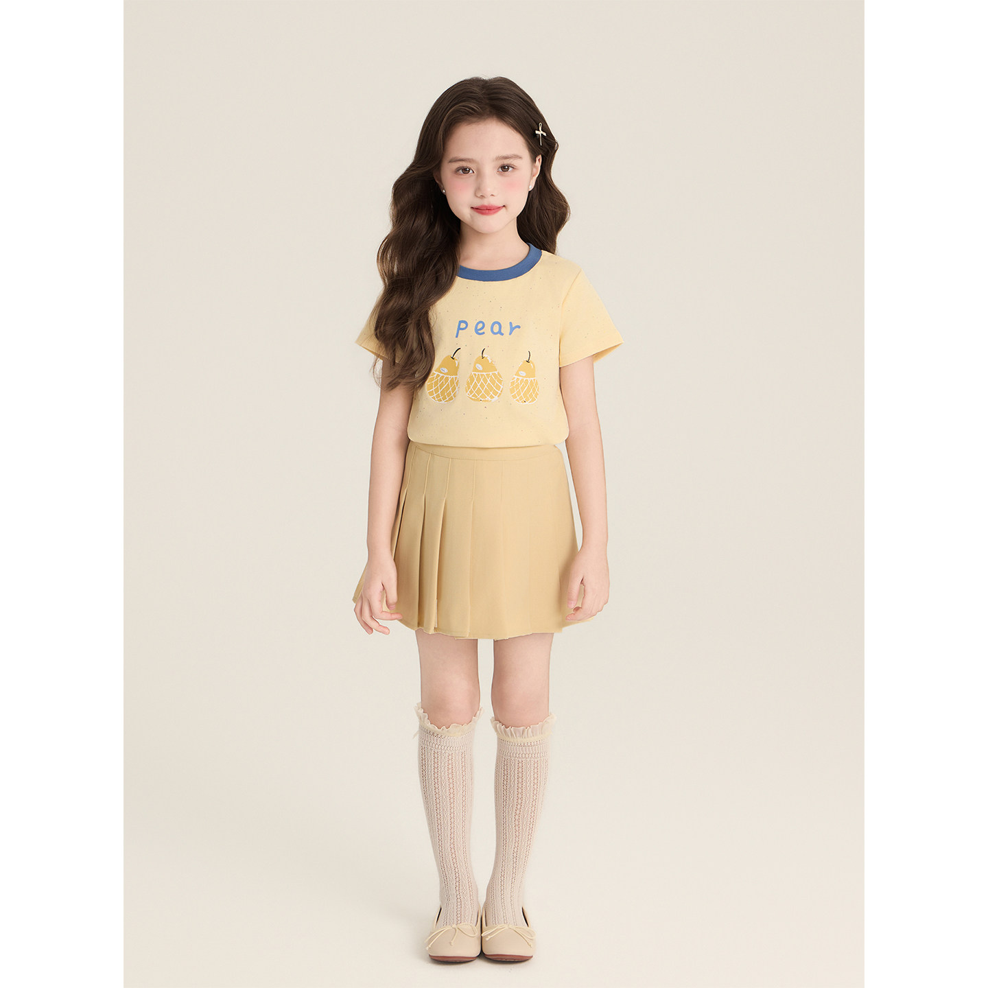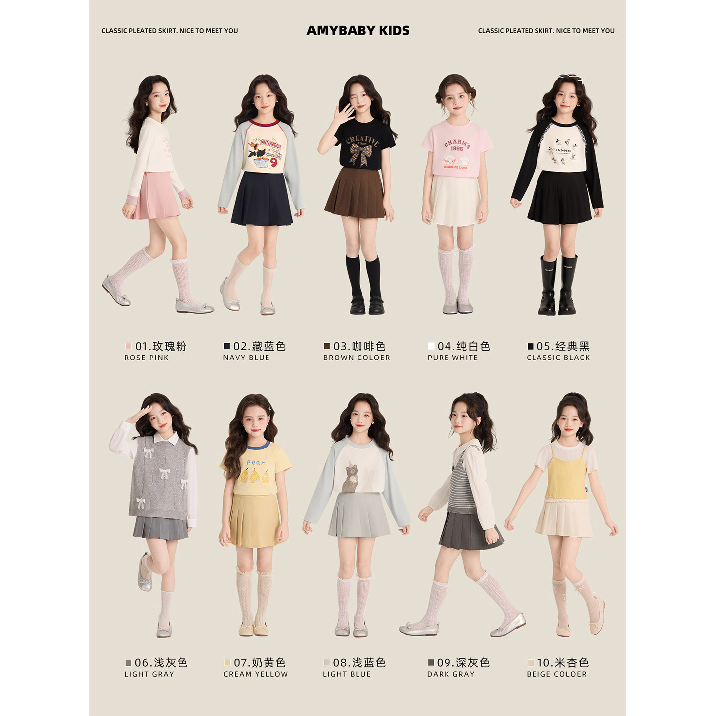 Amybaby女童裙子春夏季2026新款纯色简约百搭半身裙A字裙百褶裙