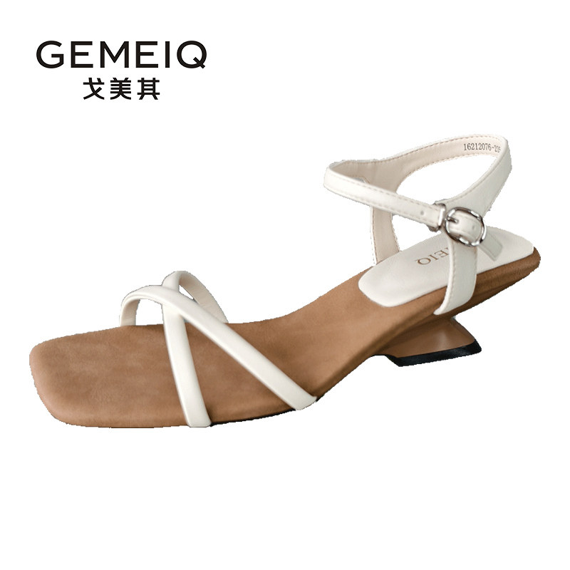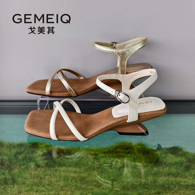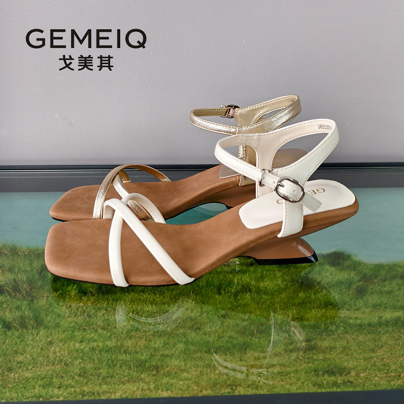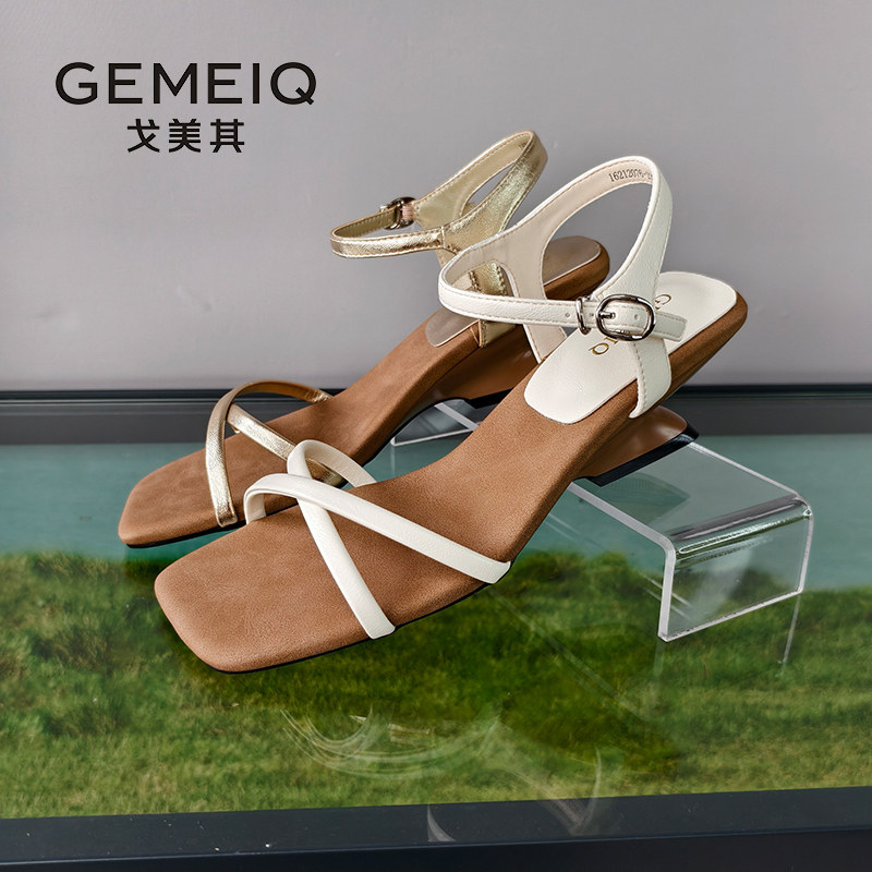 戈美其凉鞋女款2026夏季新款配裙子气质复古一字带坡跟高跟女鞋子