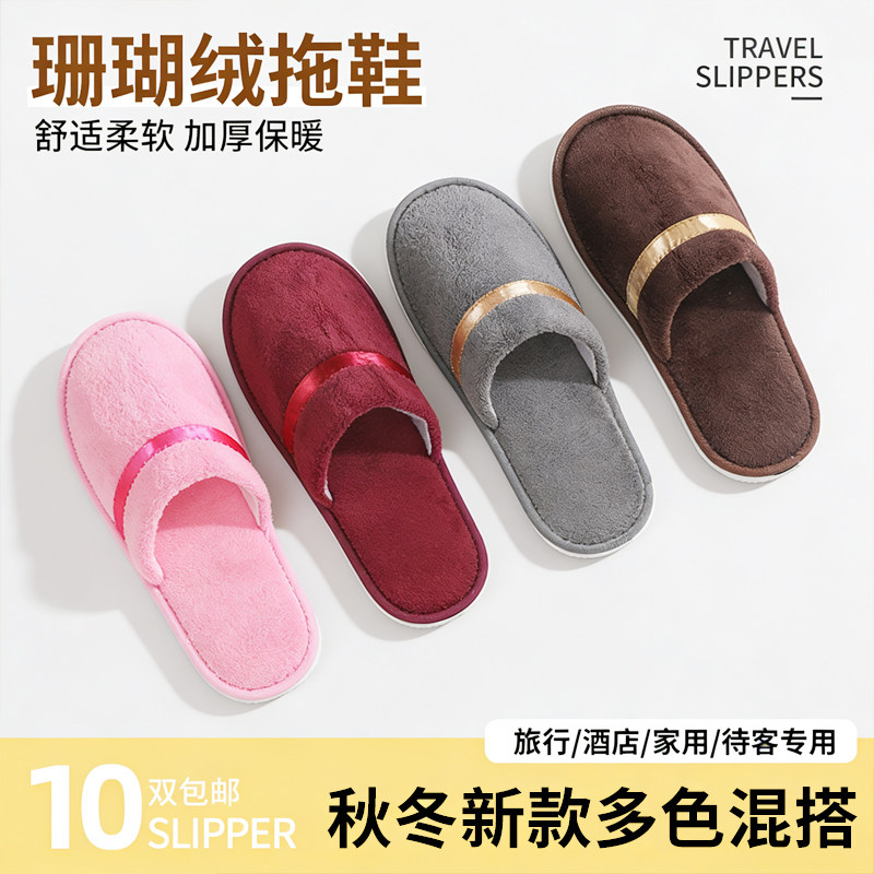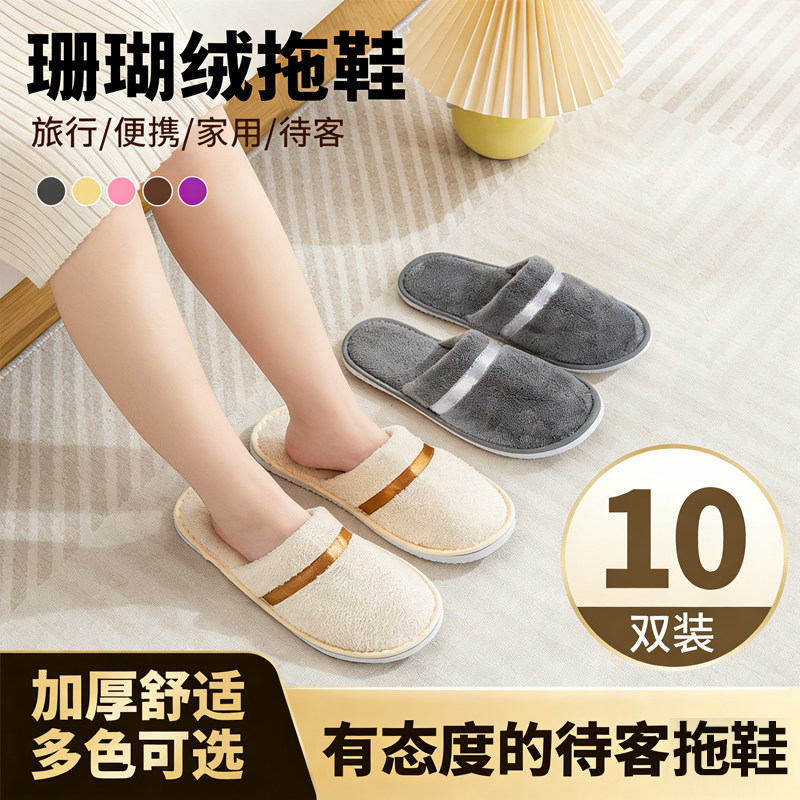 加厚一次性拖鞋居家待客拖鞋冬季宾馆室内防滑酒店旅行便携10双装