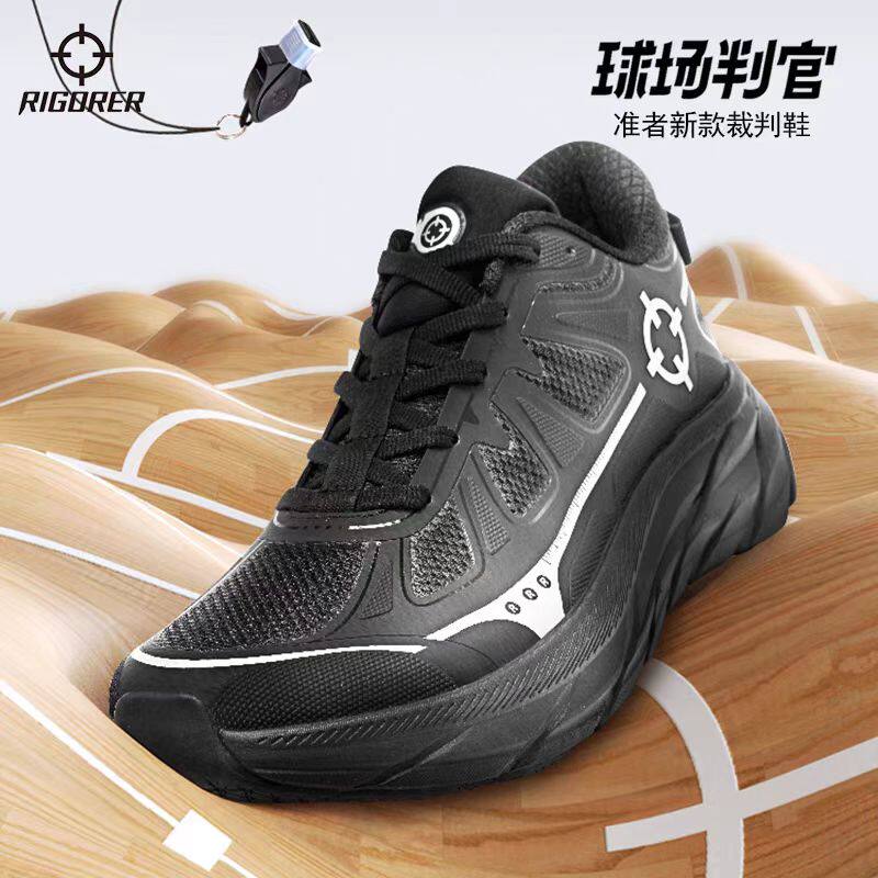 准者裁判鞋男士新款赞助款漆皮全黑篮球专业鞋防滑耐磨低帮运动鞋