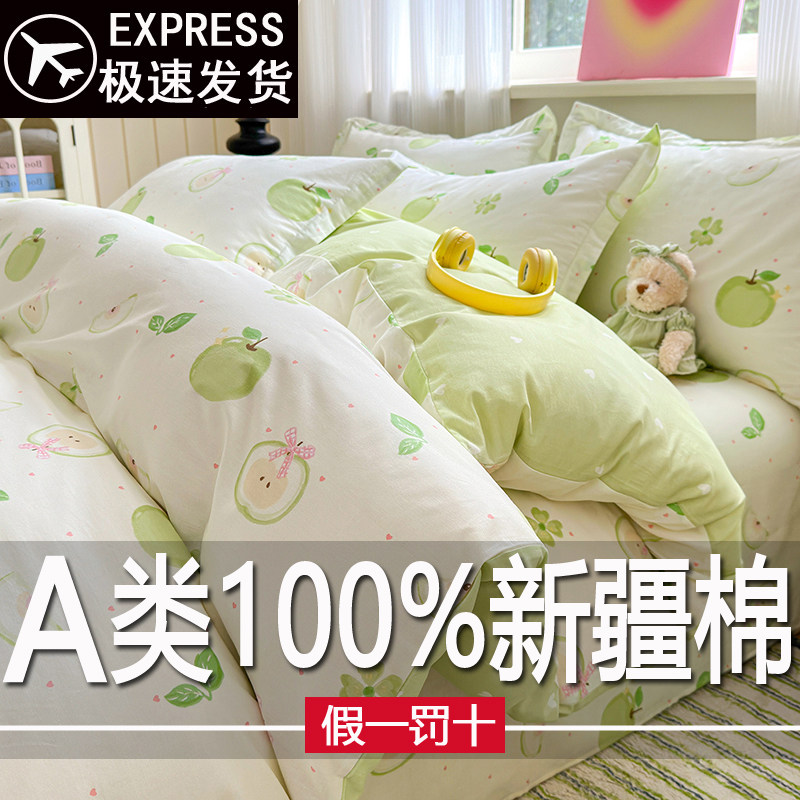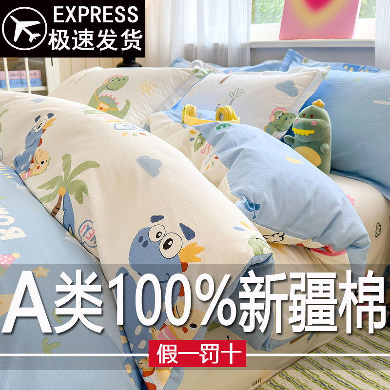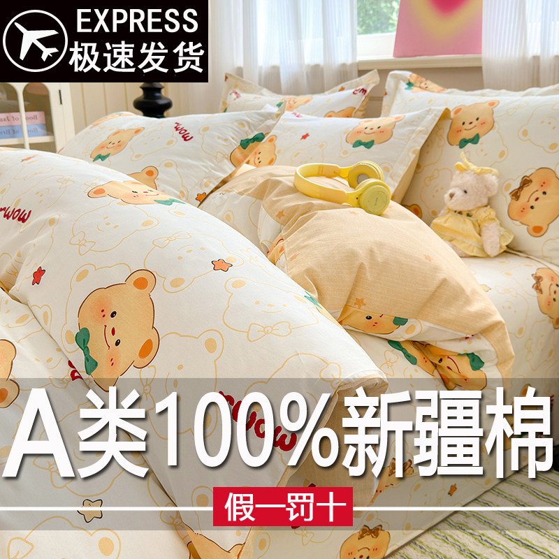A类100%新疆全棉四件套纯棉被套被罩床单2025新款宿舍床笠三件套
