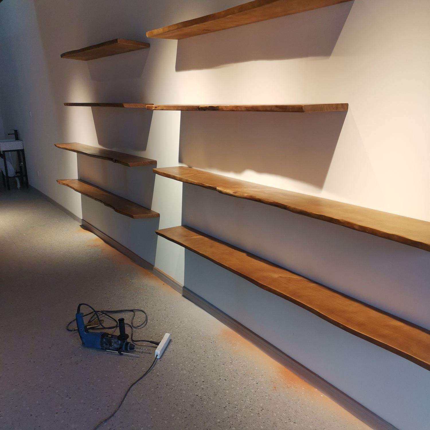 墙上置物架一字搁板实木墙面悬空壁挂书架隔板货架层板展示架绢花