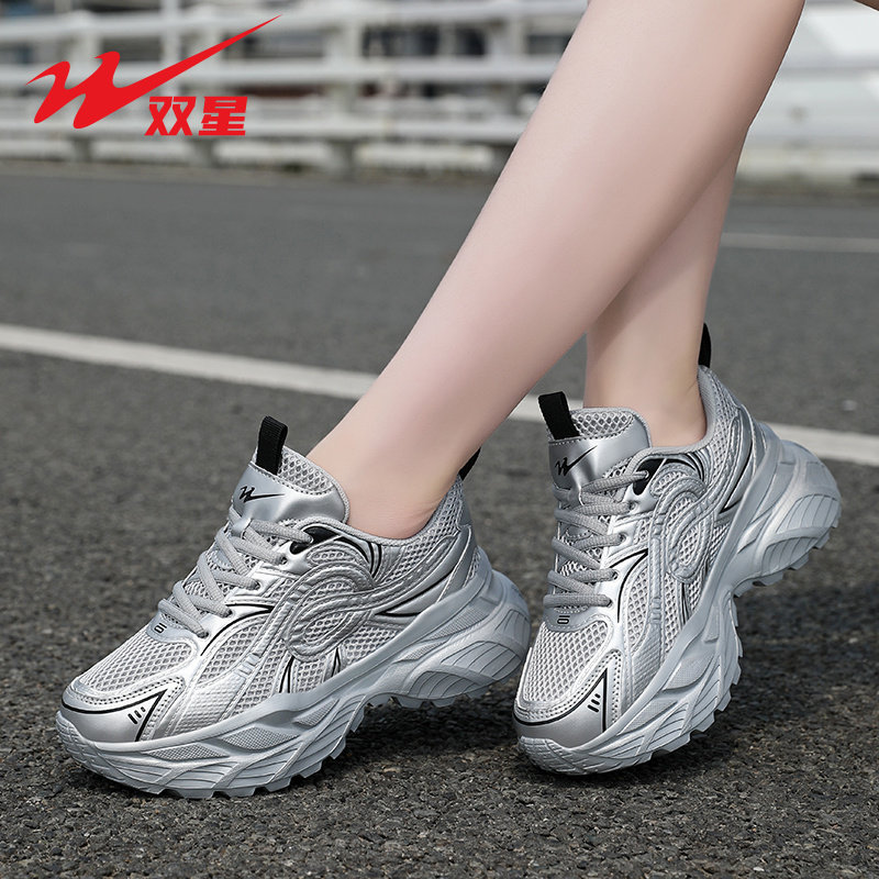 双星正品单网女鞋夏季透气镂空网眼老爹鞋实心厚底增高运动休闲鞋