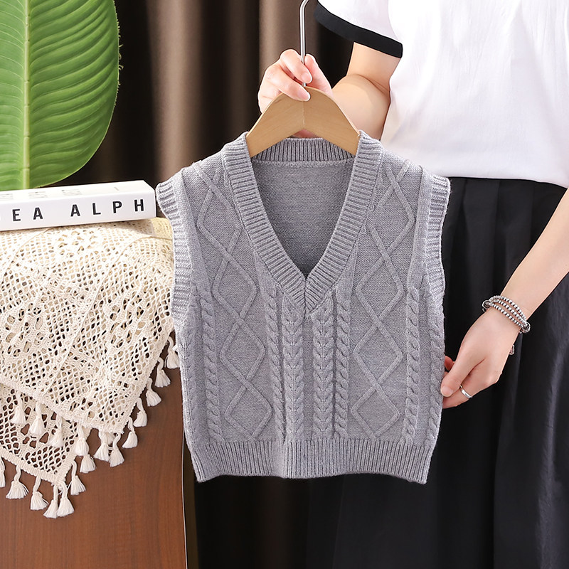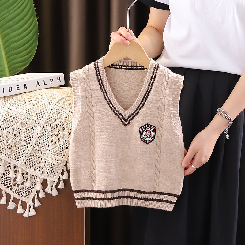儿童马甲春秋款学院风中小童校服男童针织背心女童毛衣女宝宝坎肩