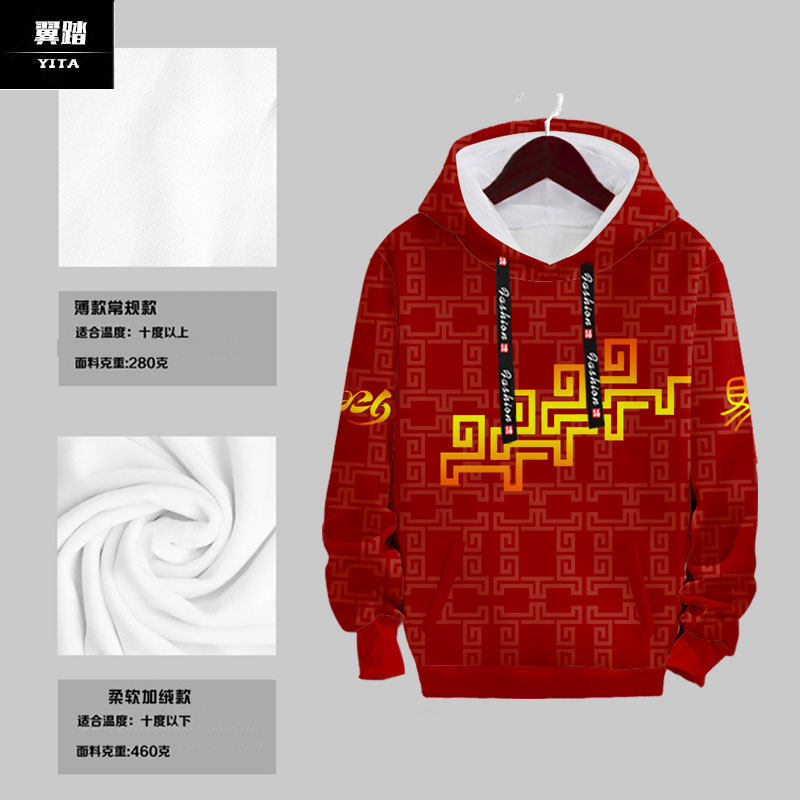 骐骥驰骋马年2026年过新年喜庆春节连帽卫衣套头薄款男女加绒外套