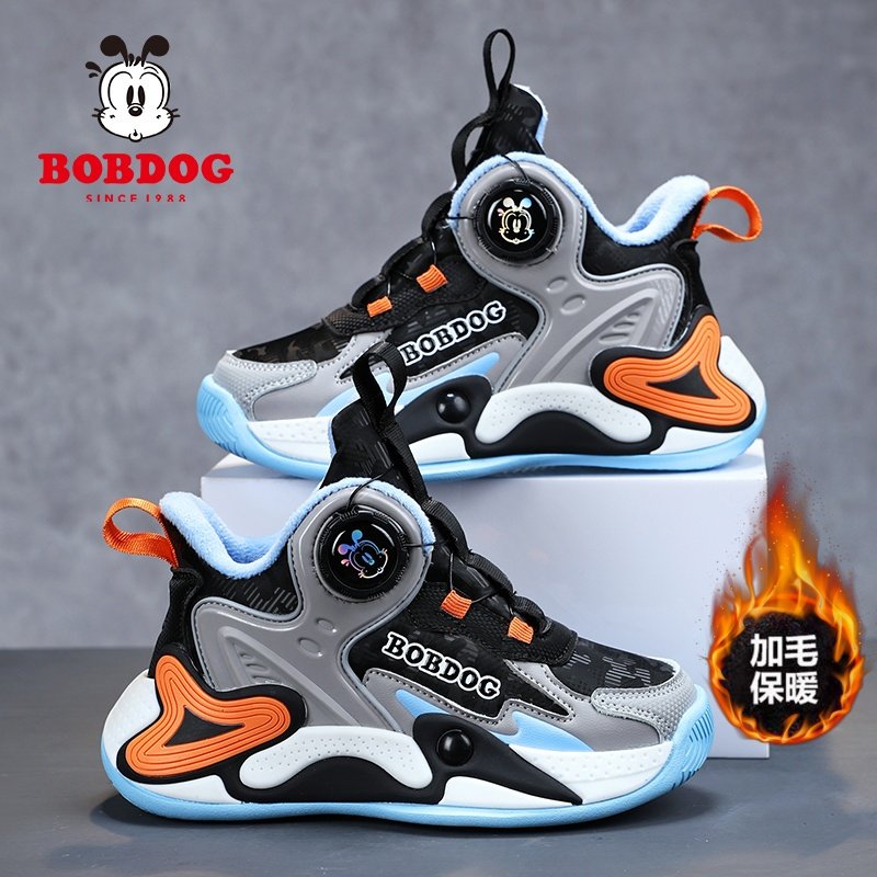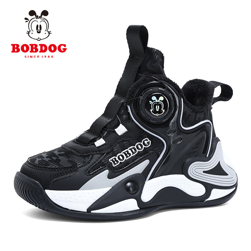 巴布豆冬季男童运动鞋儿童篮球鞋二棉加绒保暖防水中大童男孩鞋子