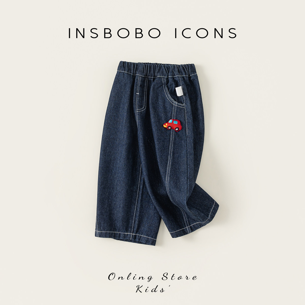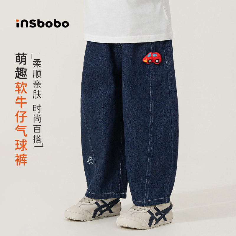 INSbobo女童裤子2026春季新款男童牛仔裤儿童洋气直筒裤童裤春装