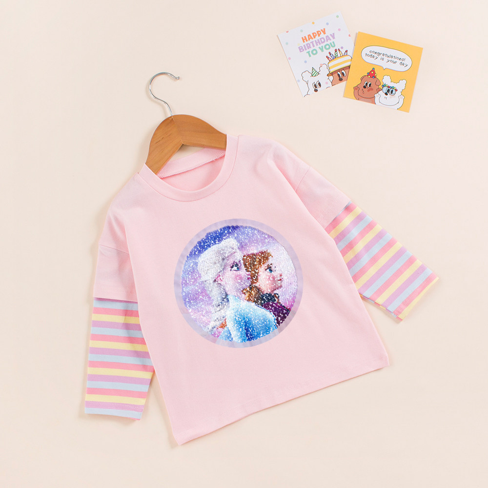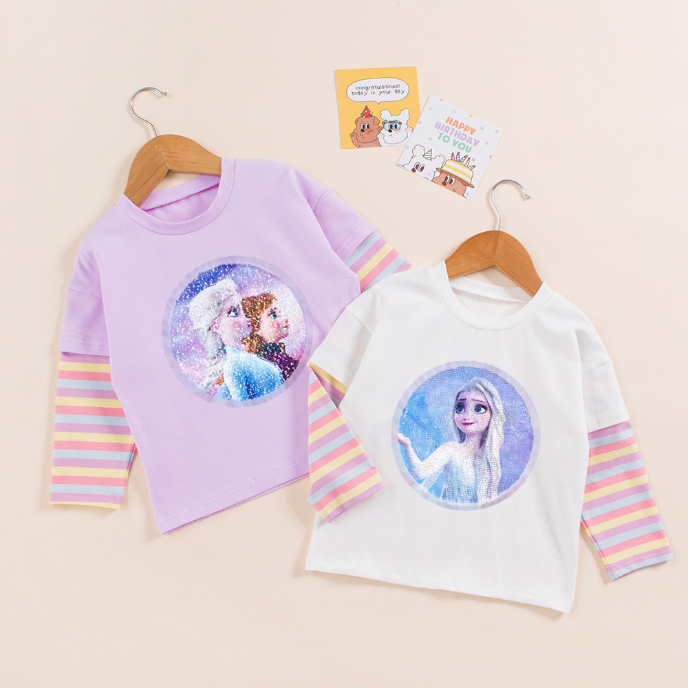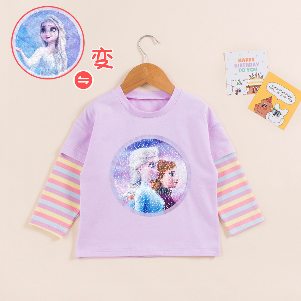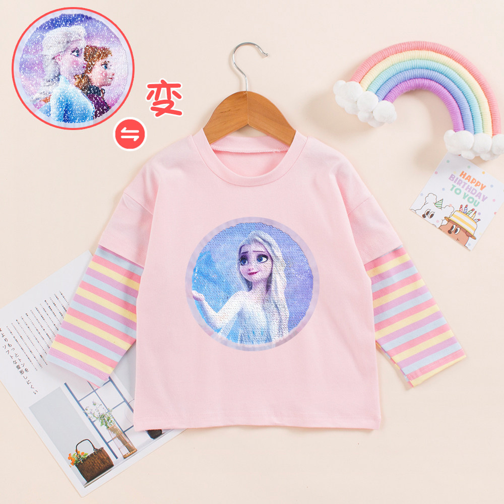 女童长袖t恤春秋款爱莎公主上衣T女宝宝亮片变色衣服儿童早秋小衫
